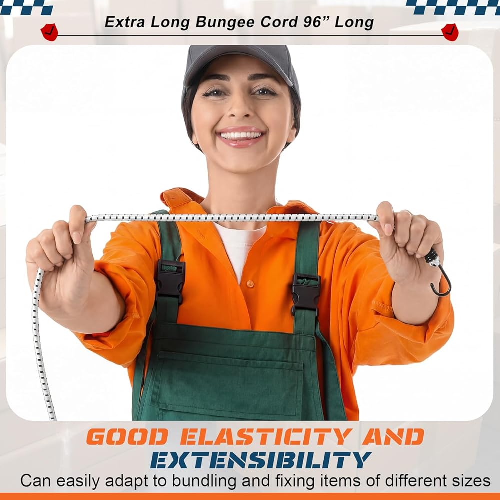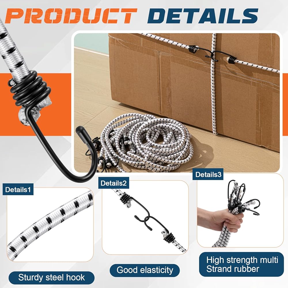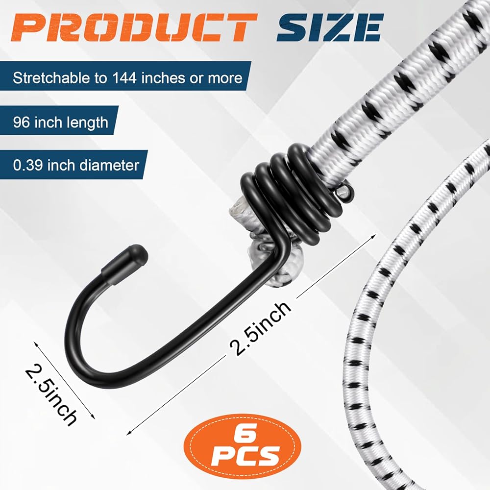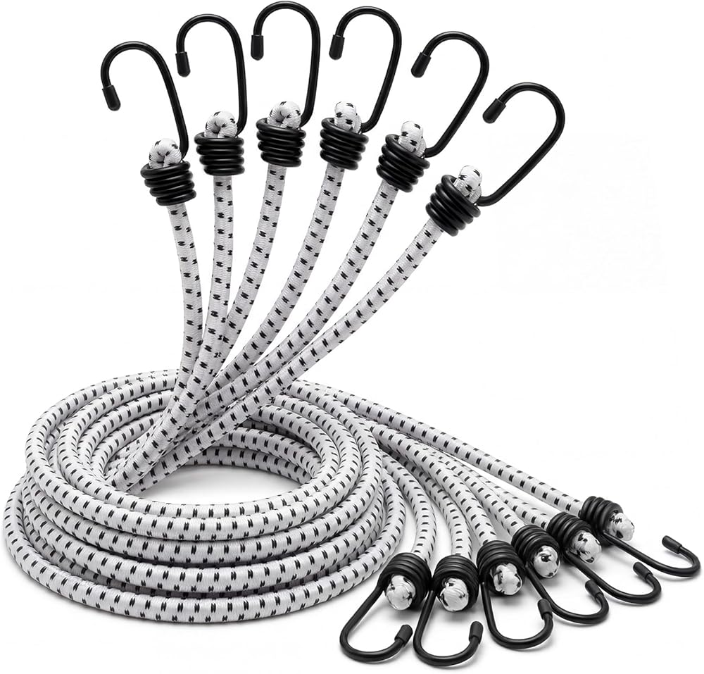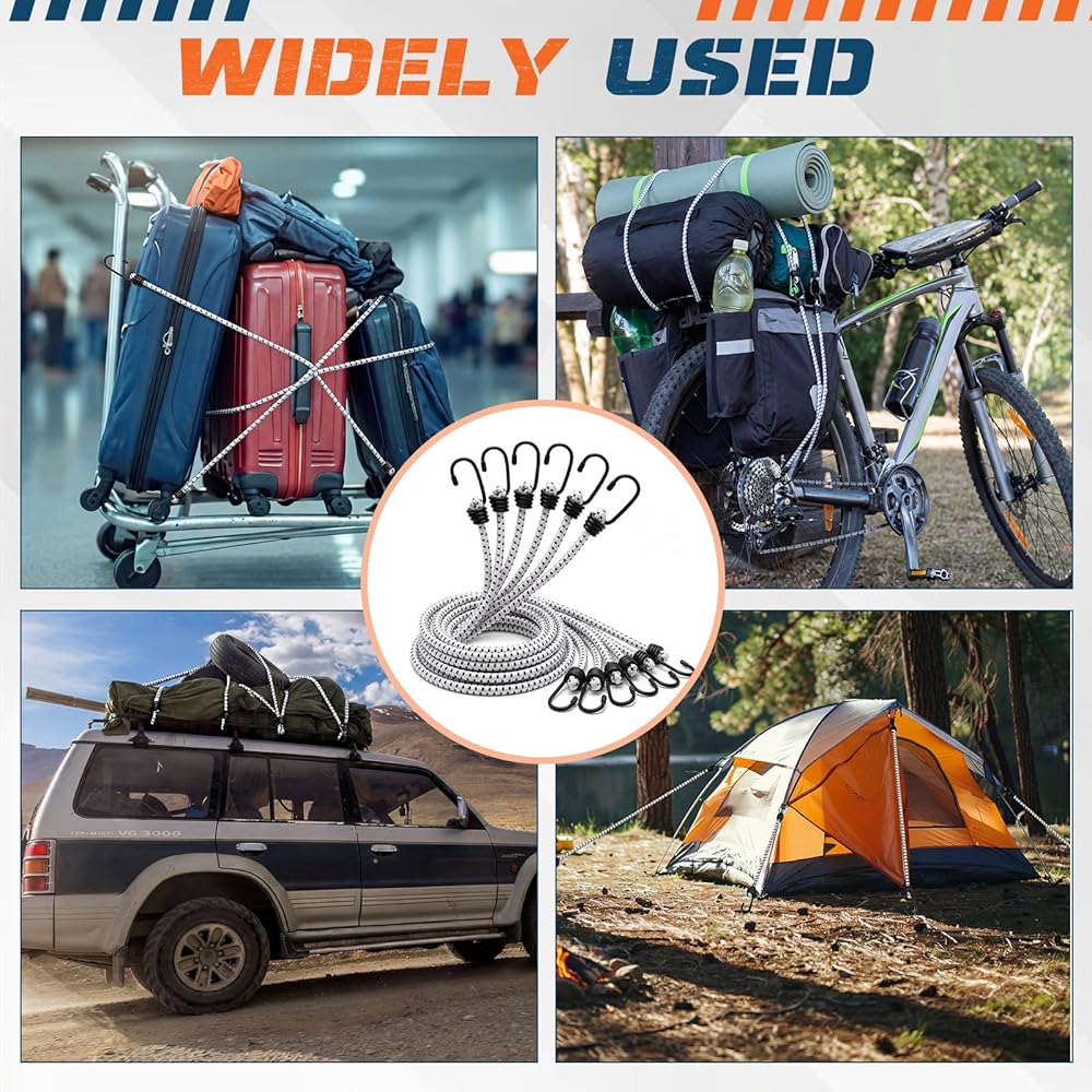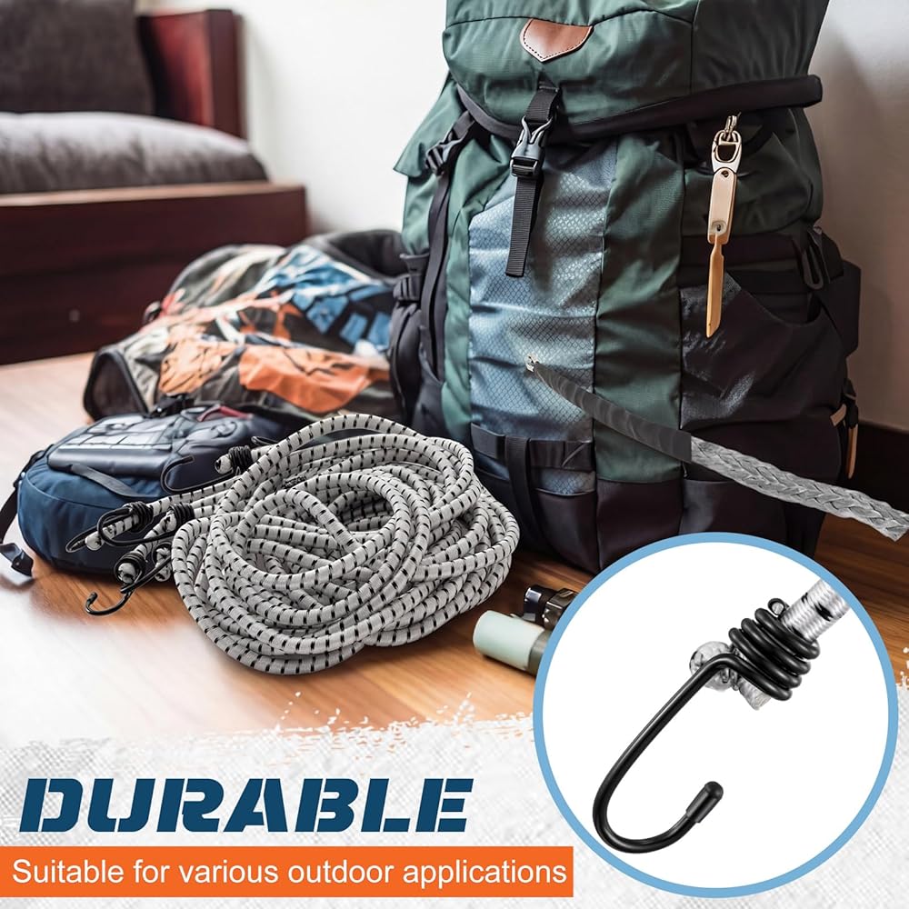 Suitable for securing gear on vehicles like bikes, ATVs, or RVs, the large bungee cords with hooks also shine in camping setups, tarp fastening, and even indoor organization.