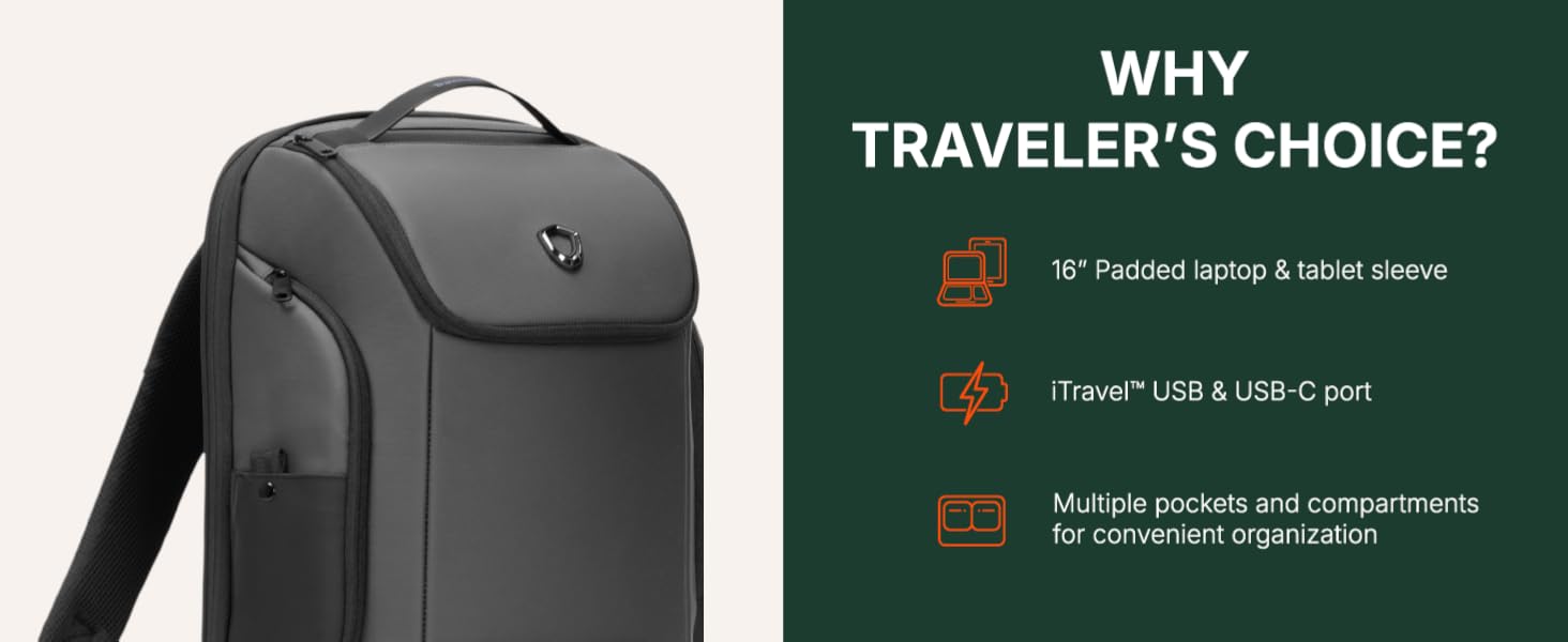 ON-THE-GO CHARGING: Stay connected and safely charge on-the-go with a built-in iTravel USB & USB-C port. (Powerbank not included)