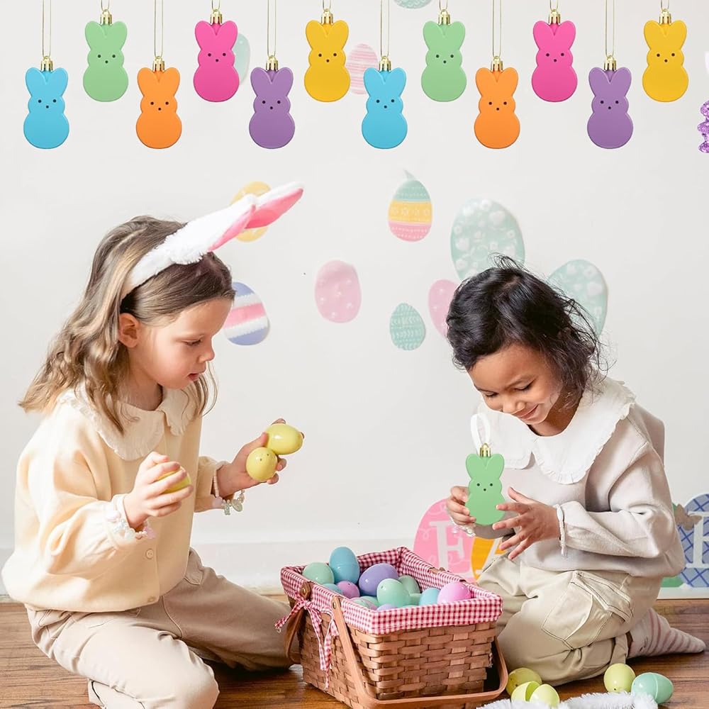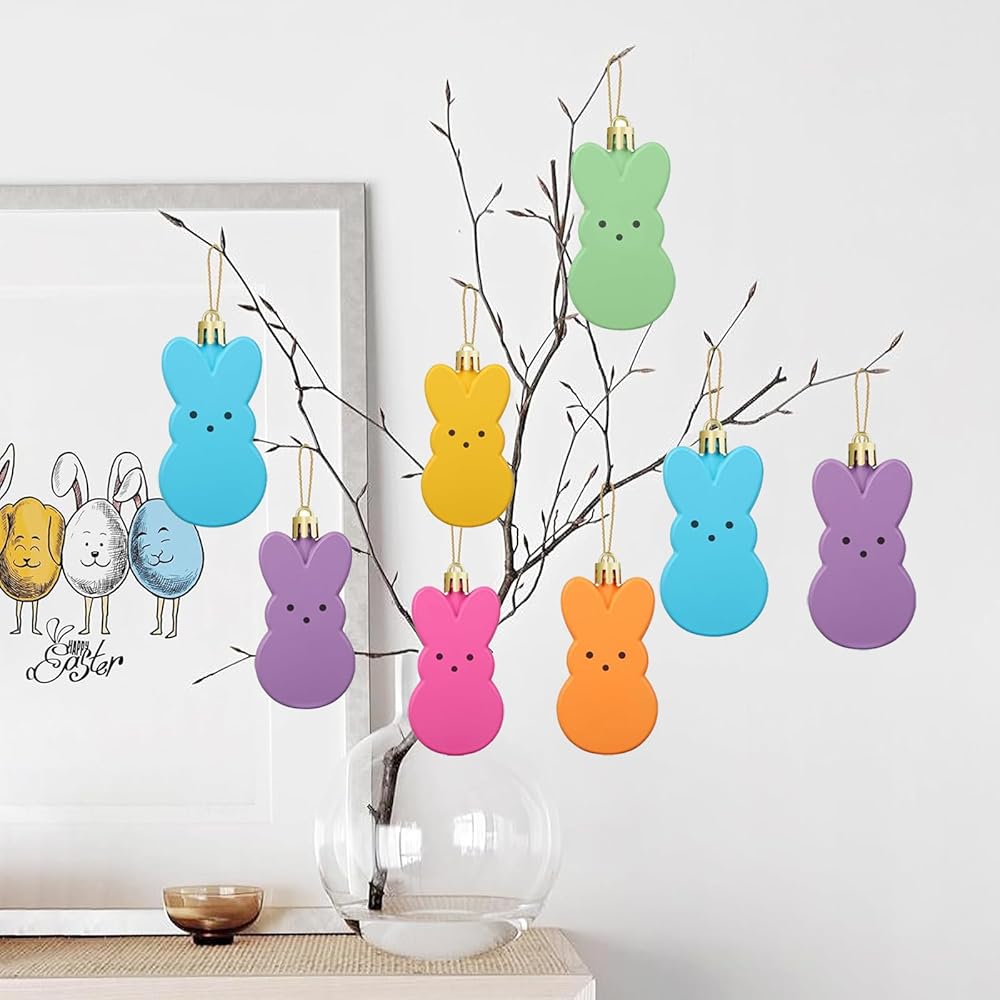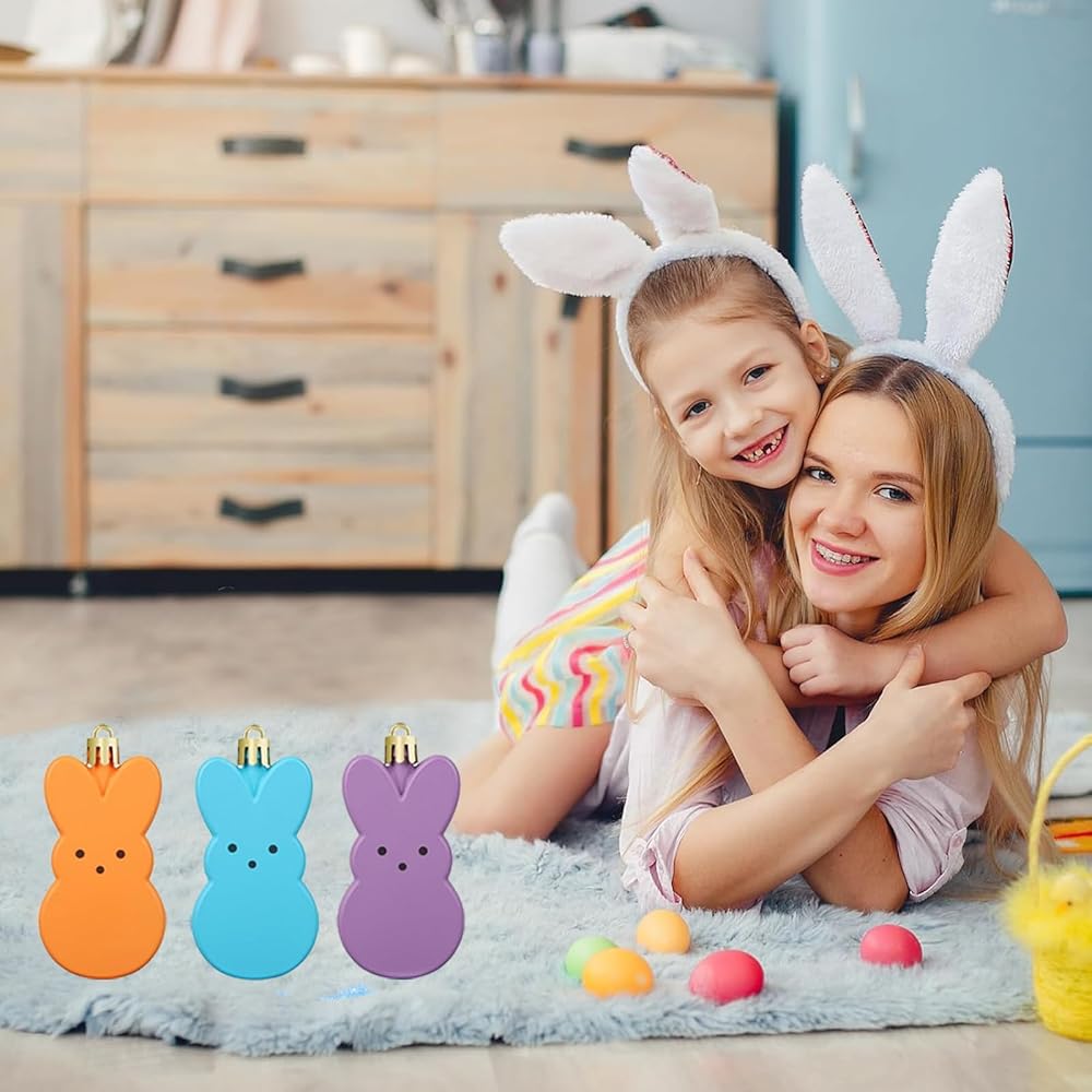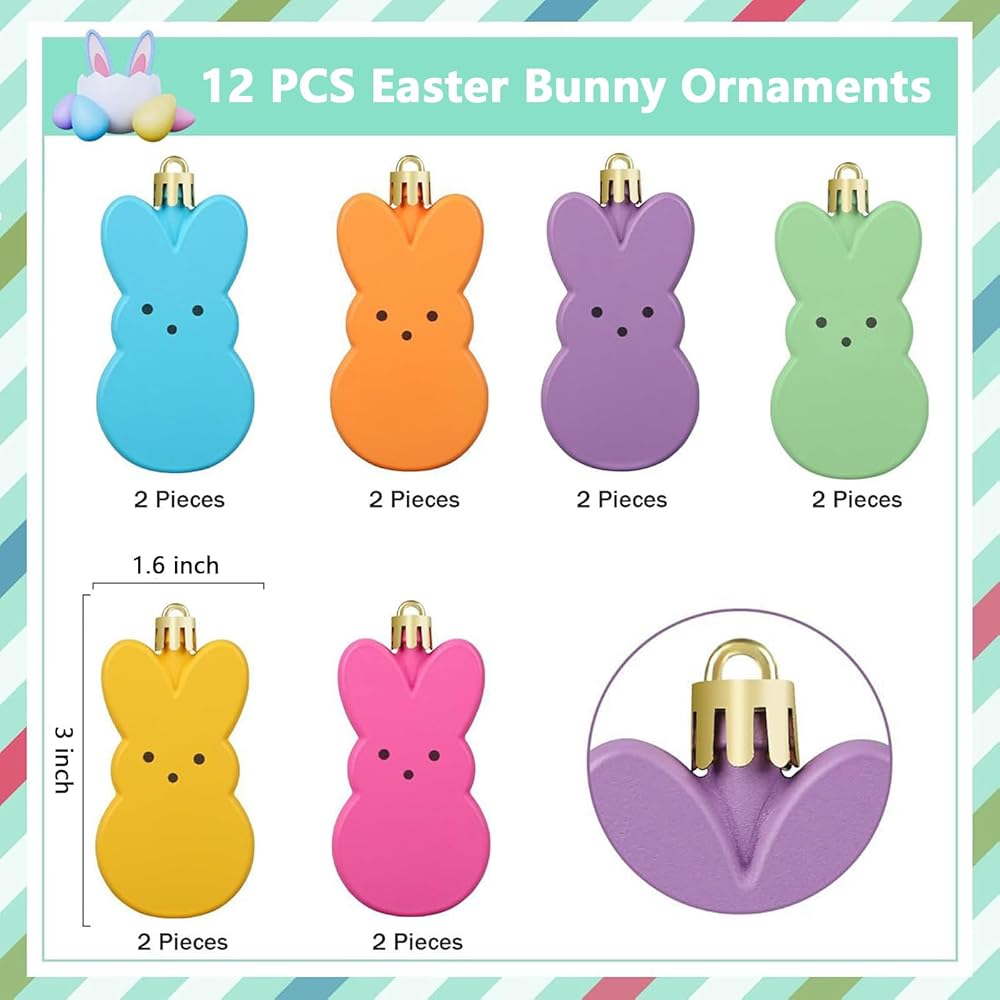 【Size Information】This set includes 12 pieces of colorful Easter hanging ornaments, each bunny plastic ornaments are 3 x 1.6 inch, thickness is about 1 cm/ 0.39 inch, fit for decorating your home during the holiday season.