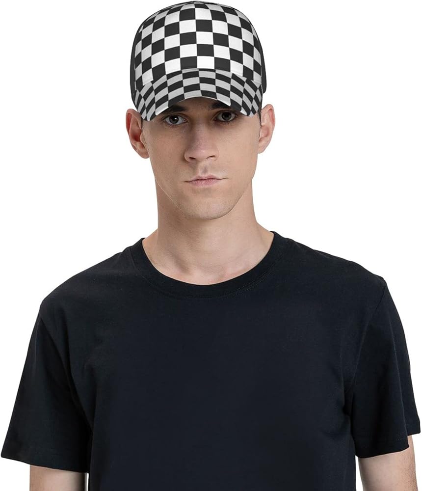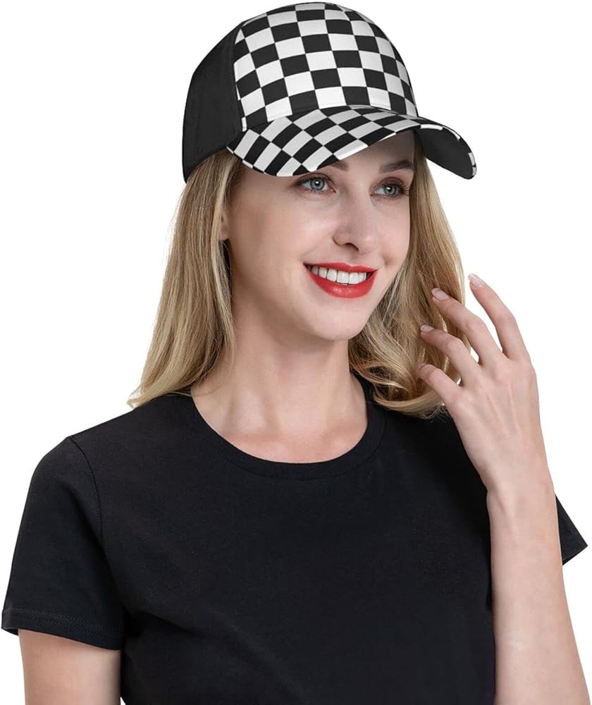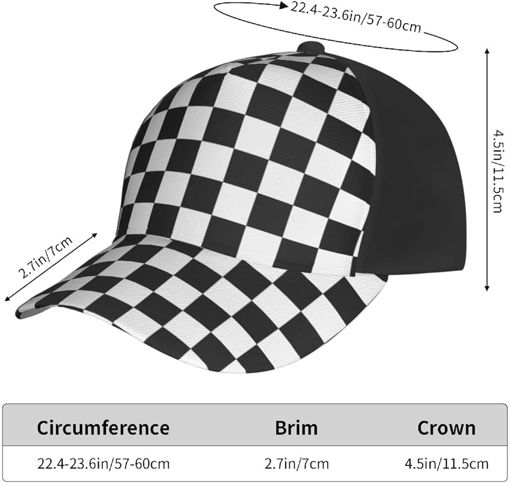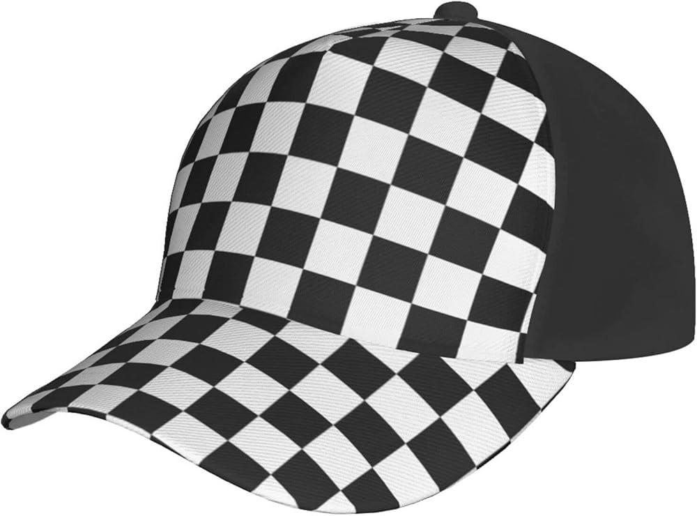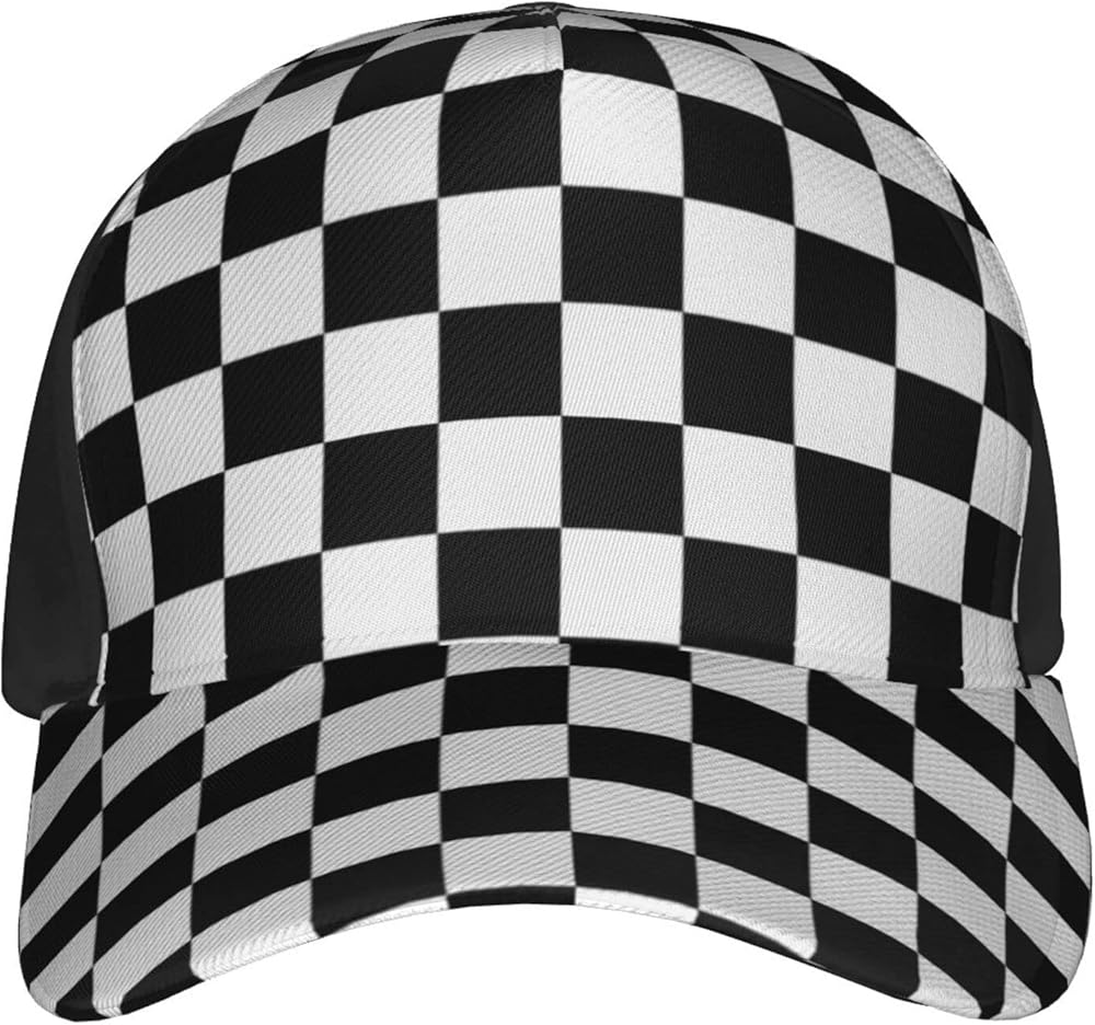 قبعة بيسبول بنمط مربعات باللونين الأبيض والأسود للنساء والرجال، قبعة بيسبول قابلة للتعديل، قبعة الأب المغسولة للصيف