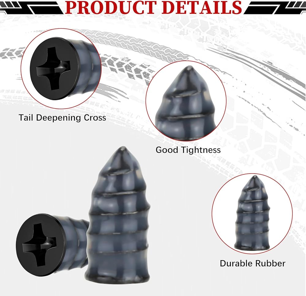 Easy DIY Installation: No need to remove the tire—simply insert the screw in tire plugs into the puncture and screw it in with a tool. The thin tip allows effortless entry, while the thick middle threads enhance grip, making repair convenient and convenient even for beginners.