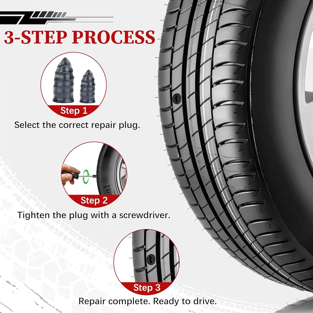 Individual Capsule Packaging & Storage: Each screw tire plug is individually sealed in a protective capsule to keep it dust-free and intact. All capsules are neatly stored in a white plastic carry case, making it easy to store in your vehicle and accessible for roadside emergencies.