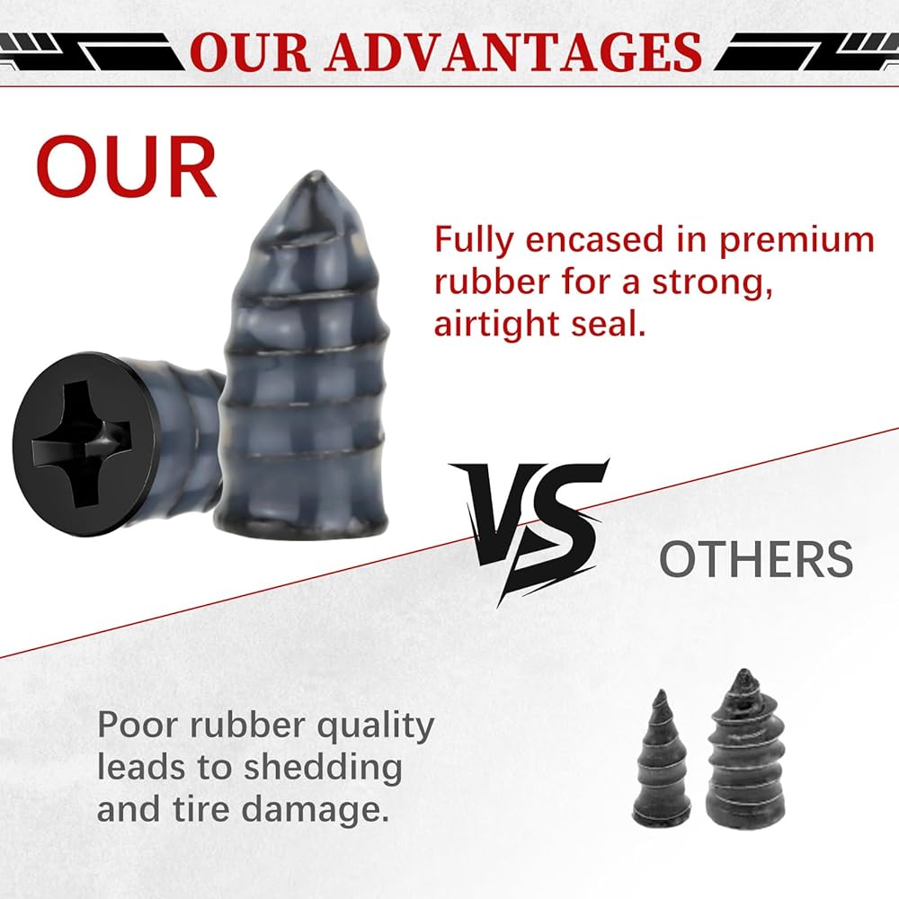 Reliable Sealing Against Leaks: Each tire repair screw features a sealant-coated surface that bonds tightly with the tire upon insertion, helping to prevent air leakage and water intrusion. This can help avoid rust or delamination of the steel belt, supporting tire integrity after repair.
