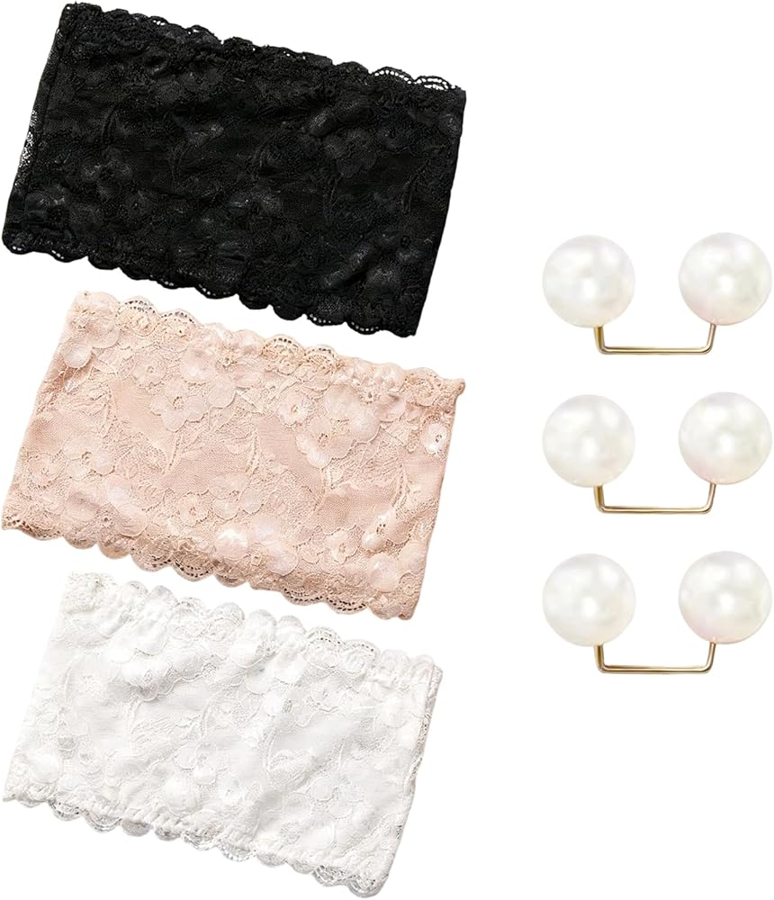3 Pcs Lace Tube Top, 3 Pearl Brooch Pins,Modesty Panel Cleavage Cover, Inserts for Low Cut Dresses, Anti-Exposure Bra Accessory, for Use with Young Women(Black, White, Nude)