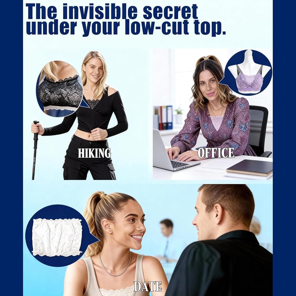 Modesty Panel Cleavage Cover Provides Comfortable Coverage with Lace Tube Top Design, Featuring Deep Neck Cover Up Inner Lace for Stylish Protection in Various Outfits