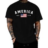 Graphic Design: The design features the AMERICA print, showcasing a vintage style with a distressed American flag pattern logo, embodying a retro and patriotic aesthetic.