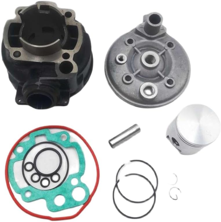Cylinder Kit Cilindri 47MM AM6 Set Pistioni per Minarelli MX50 RS50 This cylinder kit is designed for compatibility with Minarelli AM6 engines, featuring a 47mm diameter cylinder and matching piston set.It includes all necessary components for engine rebuilding, such as cylinder, piston, rings, gudgeon pin, and circlips.The kit is engineered for precise fitment on models like MX50 and RS50.Construction focuses on and consistent performance under regular operating conditions.The design supports standard engine displacement and maintains specifications for function.