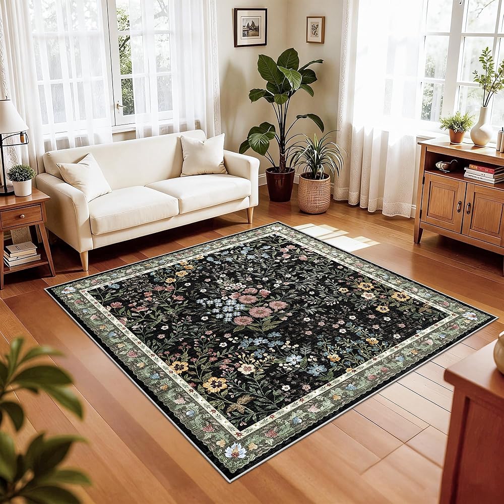 Thin, Soft - Crafted with a low-pile, thin design, it won't snag on doors. The soft texture feels cozy underfoot, making it a delight to walk on barefoot, while ensures it with stands high-traffic use, making it long-lasting for daily wear in busy households. Its thin profile also makes the square rug easy to store or layer with other decor pieces.