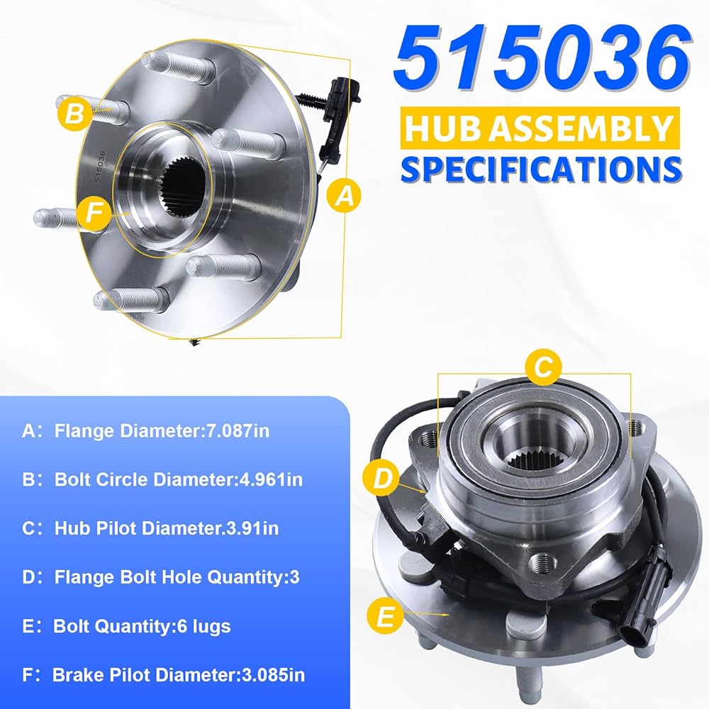515036 Front Wheel Bearing Hub Assembly with 6 Lug ABS Compatible with Chevrolet Tahoe 2000-2006, Fit for Cadillac Escalade ESV 2003-2006, Fit for GMC Yukon XL 1500 2000-2006