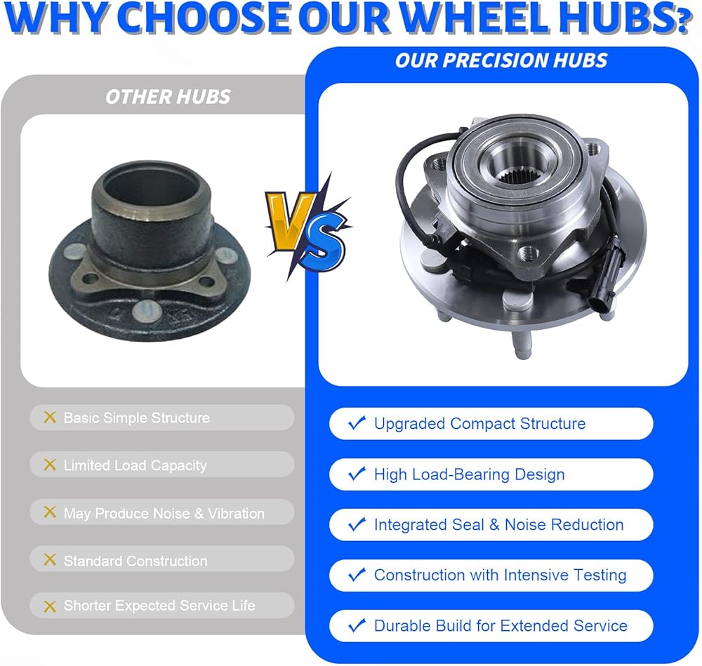 High Load Capacity: The Luyizyo wheel bearing hub assembly is built to handle both axial and radial load pressures, making it ideal for everyday driving conditions. it seamlessly fits your original disc rotors, wheels, and nuts—revitalizing the appearance of your old, rusted wheel hub bearings