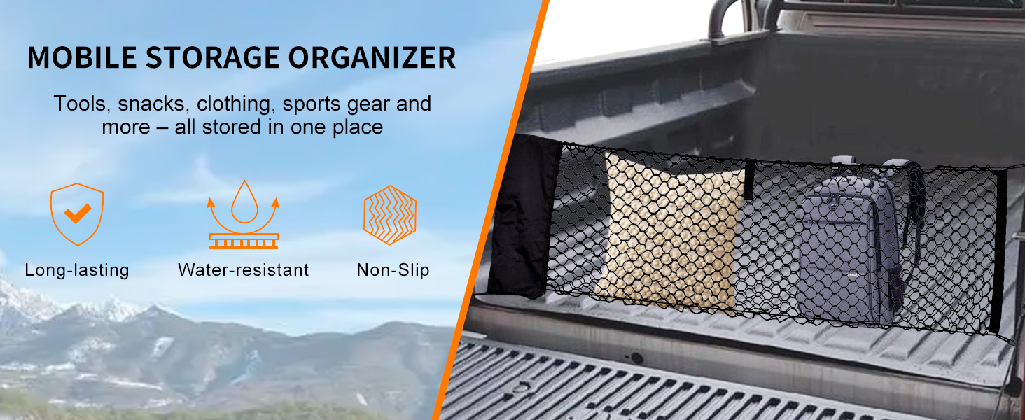 شبكة شحن لسرير شاحنة الالتقاط، مقاس 50 × 17.7 بوصة، متوافقة مع Ford F150، F150/F250، Chevy Silverado، GMC Sierra - حقيبة تخزين مطورة
