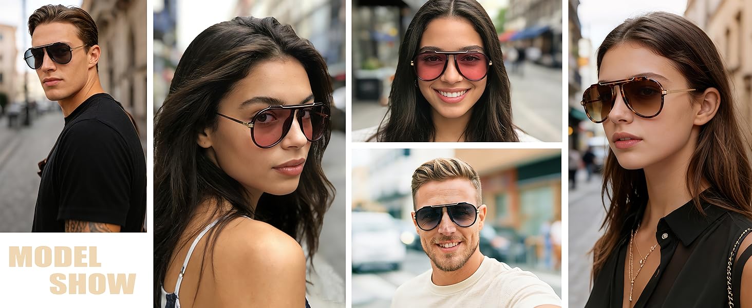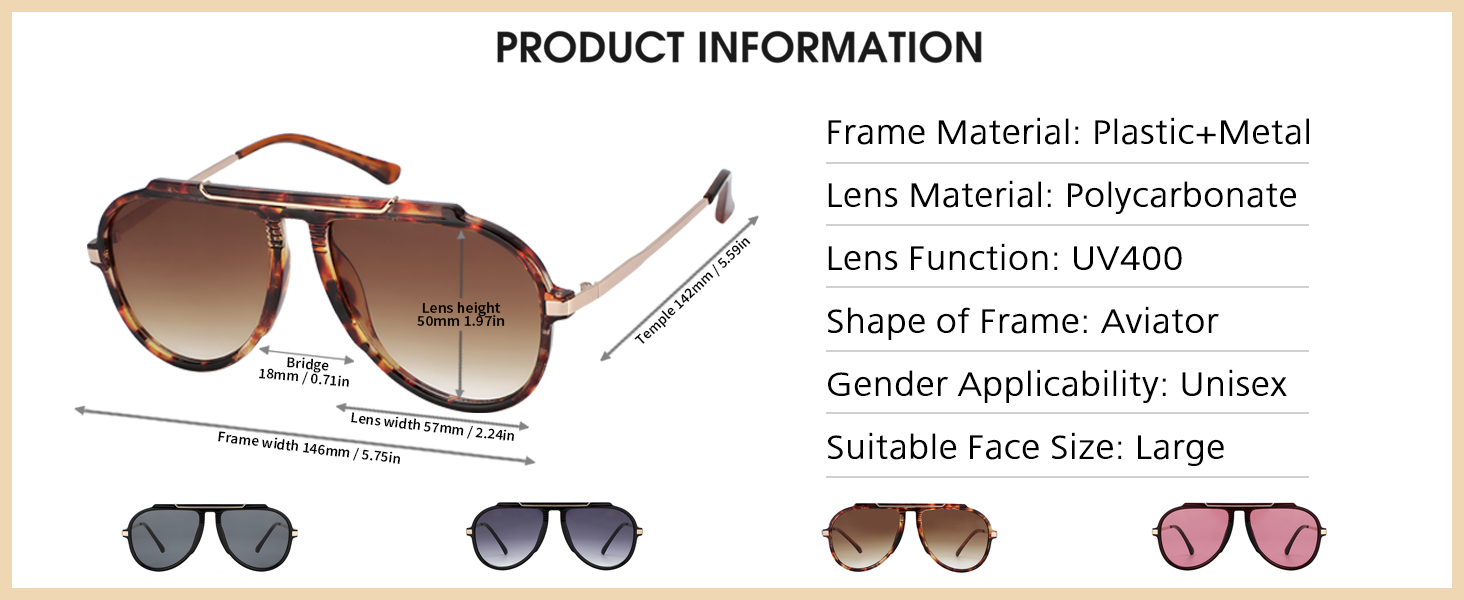 • تصميم كلاسيكي كبير الحجم: مستوحى من أزياء السبعينيات الشهيرة، ومعزز بلمسات معدنية مصقولة. يمكنك الانتقال بسلاسة من خلال الأنماط الموسمية بأناقة خالدة، مما يرتقي بمظهرك سواء كنت على الشاطئ أو مسافرًا.