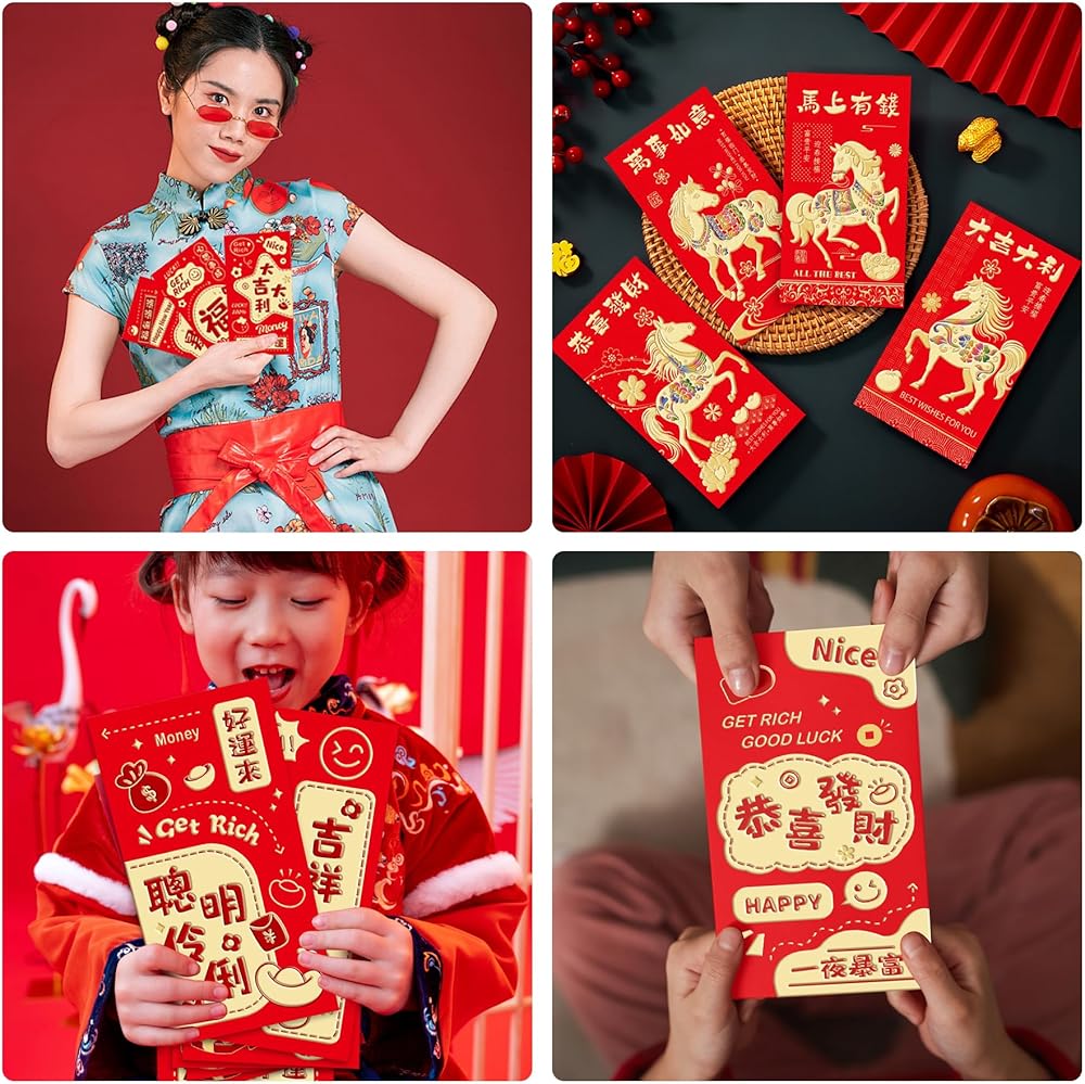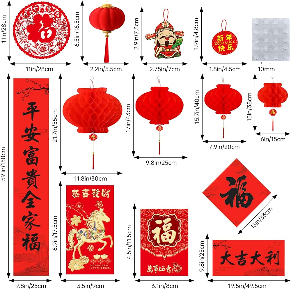 Chinese New Year Decorations 2026 Year of the Horse Lunar Spring Festival Decor Red Envelopes Paper Lanterns Hanging Ornaments Fu Characters Indoor Window Party Christmas Birthday Wedding