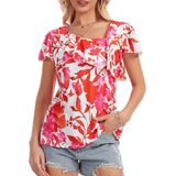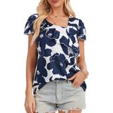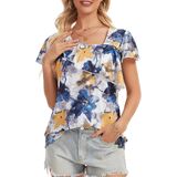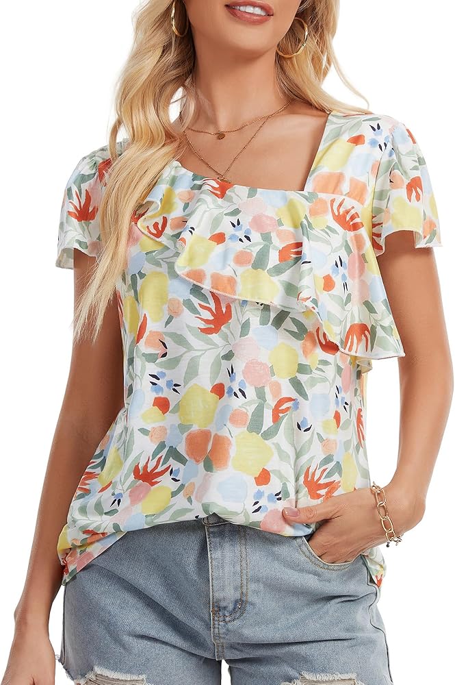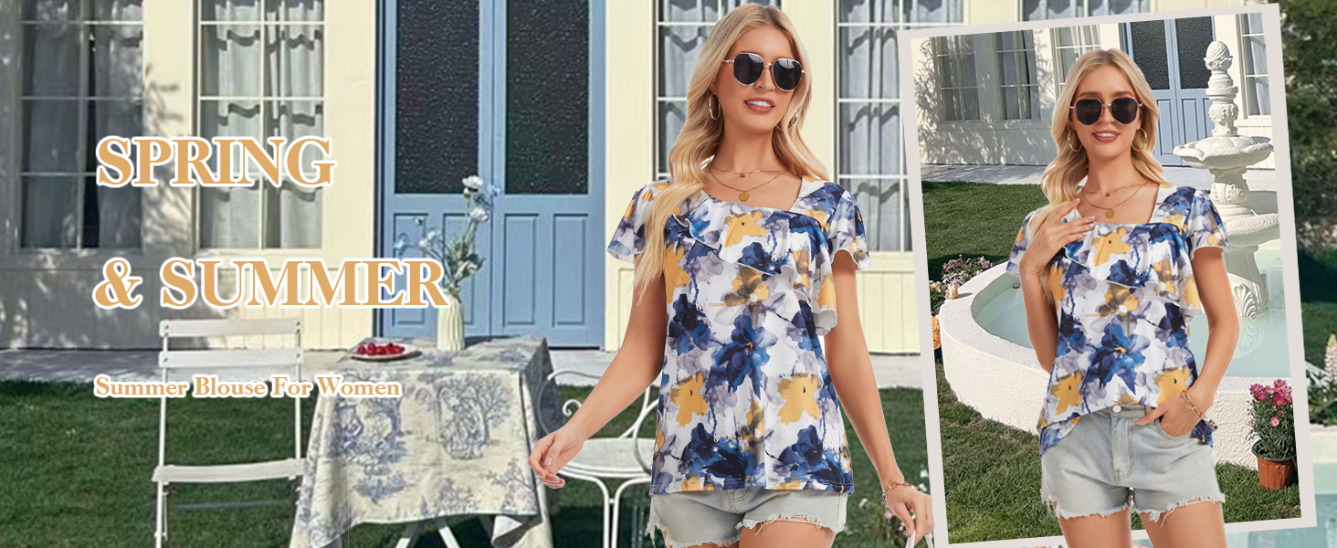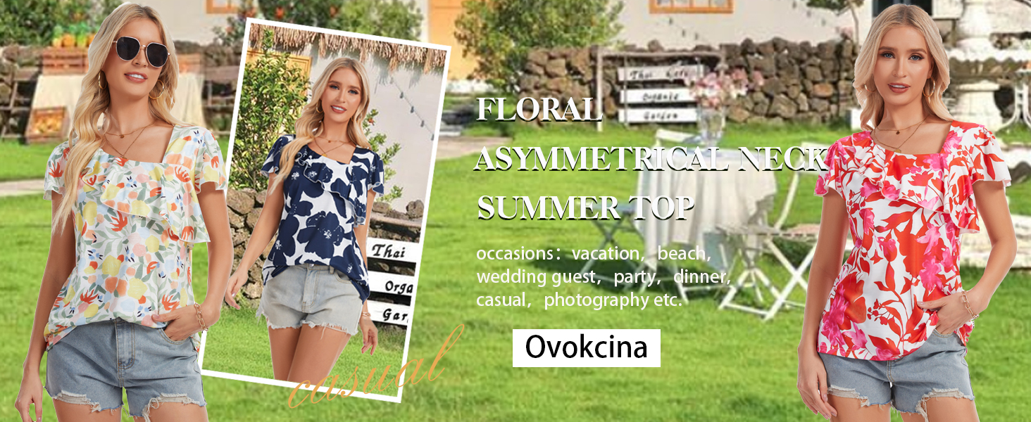 المزايا: تتميز السترة الصيفية النسائية بتصميم فريد غير متماثل برقبة على شكل حرف V، وأكمام قصيرة، وأساور مكشكشة، وطباعة زهور، مما يضيف لمسة من الرقي والأناقة. تضمن الحاشية الفضفاضة ارتداءً مريحًا في الصيف