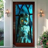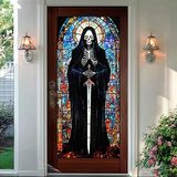 زجاج قوس قزح حيوي وتباين داكن: تندمج شظايا الزجاج الملون بألوان قوس قزح مع جمجمة بيضاء صارخة وعباءة سوداء عميقة، مما يخلق تناقضًا بصريًا مقنعًا للحياة والموت معززًا بتقنية قفل الألوان المتقدمة من PVC لتألق دائم