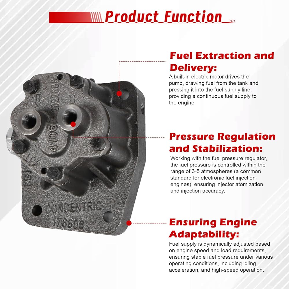 مادة قوية: مضخة وقود المحرك مصنوعة من مواد معدنية عالية الجودة، تمت معالجتها بدقة، مع هيكل قوي، وقوة عالية، ومقاومة للصدمات، وليس من السهل تلفها، ومقاومة لدرجات الحرارة العالية، وعمر خدمة طويل.