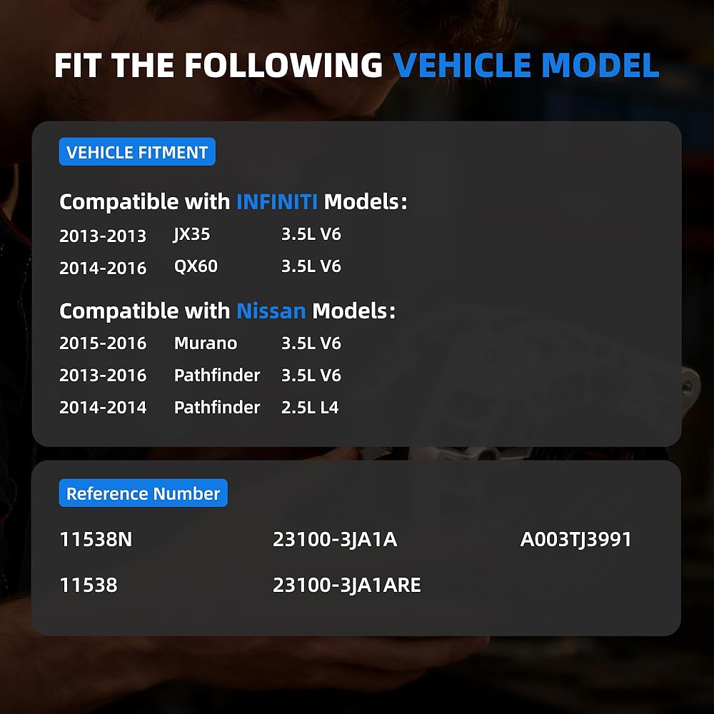 【Durability & Reliability】: Manufactured with high-quality materials and subjected to rigorous no-load, load, and full-quality testing. Designed specifically compatible with INFINITI JX35 2013 V6 3.5L, INFINITI QX60 2014-2016 V6 3.5L, Nissan Murano 2015-2016 V6 3.5L, Nissan Pathfinder 2013-2016 V6 3.5L, Nissan Pathfinder 2014 L4 2.5L. Verify your vehicle details and part number for a perfect, hassle-free fitment