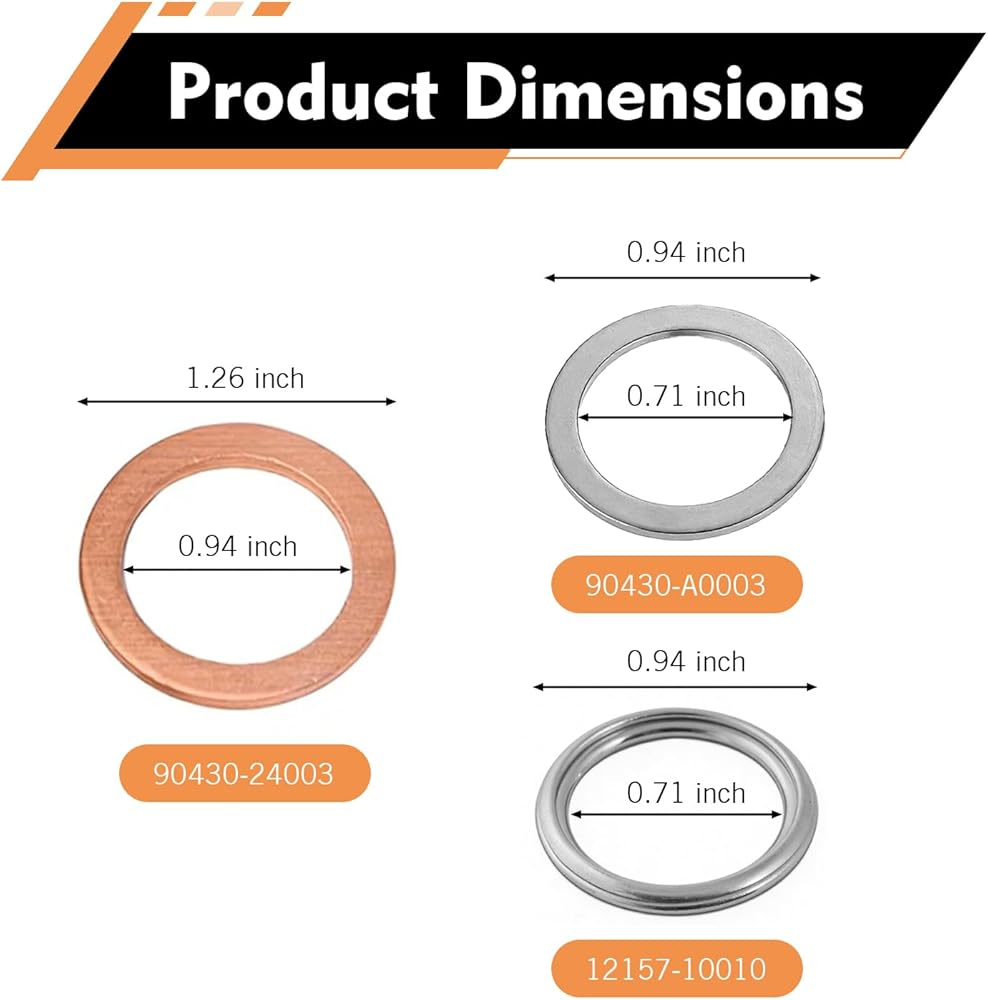 - All dimensions strictly follow OEM standards, with precise sizing for different use scenarios, ensures perfect fit with drain bolts and no oil leakage risk.