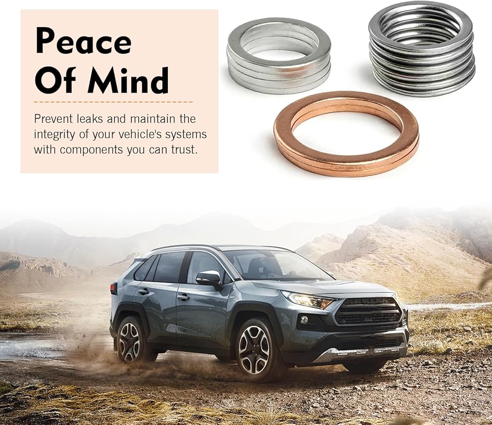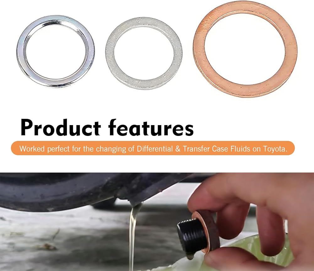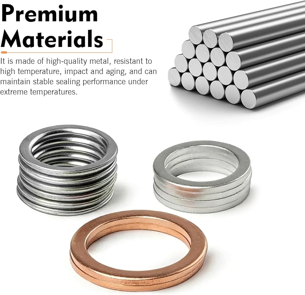 - Made of steel and copper with good ductility and oil resistance, rust and corrosion proof, can form tight seal on bolt and oil pan surfaces.