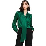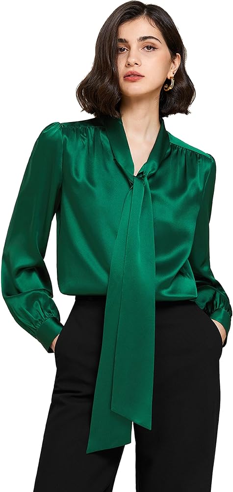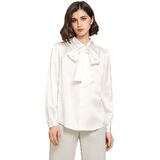 • ELEGANT, TIE COLLAR, BUTTON FRONT: This silk blouse exudes stunning sophistication, boasting the luxurious sheen of silk and an unparalleled silhouette. You'll undoubtedly radiate from within the moment you slip it on. The exaggerated bow tie neckline captures attention towards your beautiful face and neck. Additionally, you can opt to loosen the necktie for a breezy, carefree look.