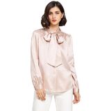 Mommesilk نقية 22 مومي الحرير ربطة القوس فيونكة بلوزة للنساء طويلة الأكمام الشريط طوق العمل عادية لينة الفاخرة قميص للسيدات in Kuwait