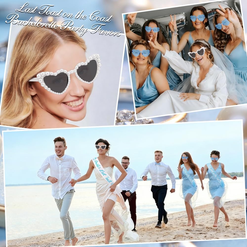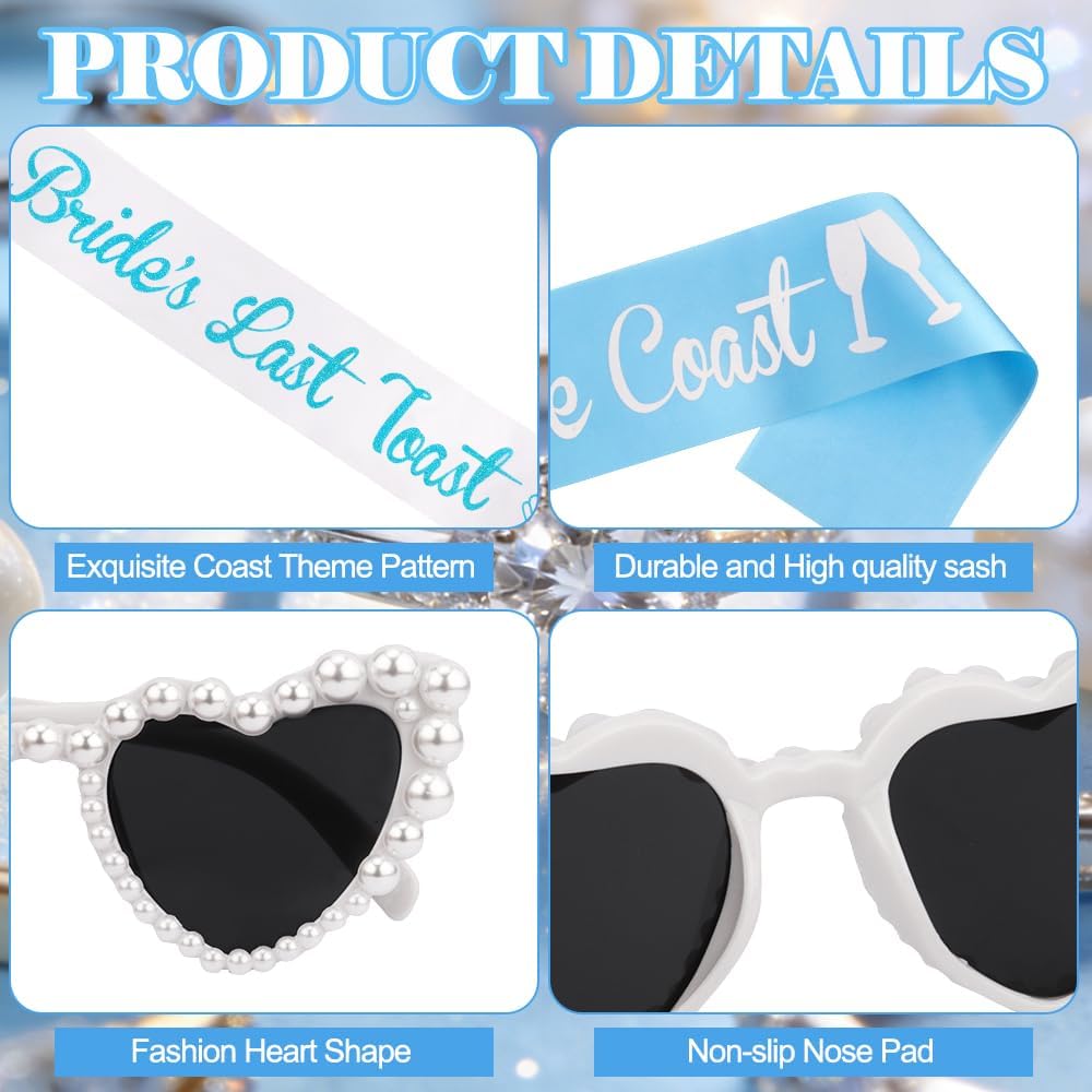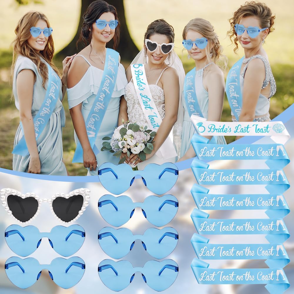 14 قطعة من زخارف حفلات توديع العزوبية الأخيرة على الساحل باللون الأزرق والأبيض على الشاطئ الساحلي لوصيفات العروس ونظارات شمسية مجموعة زينة لحفلات الزفاف وهدايا العروس لوصيفات العروس