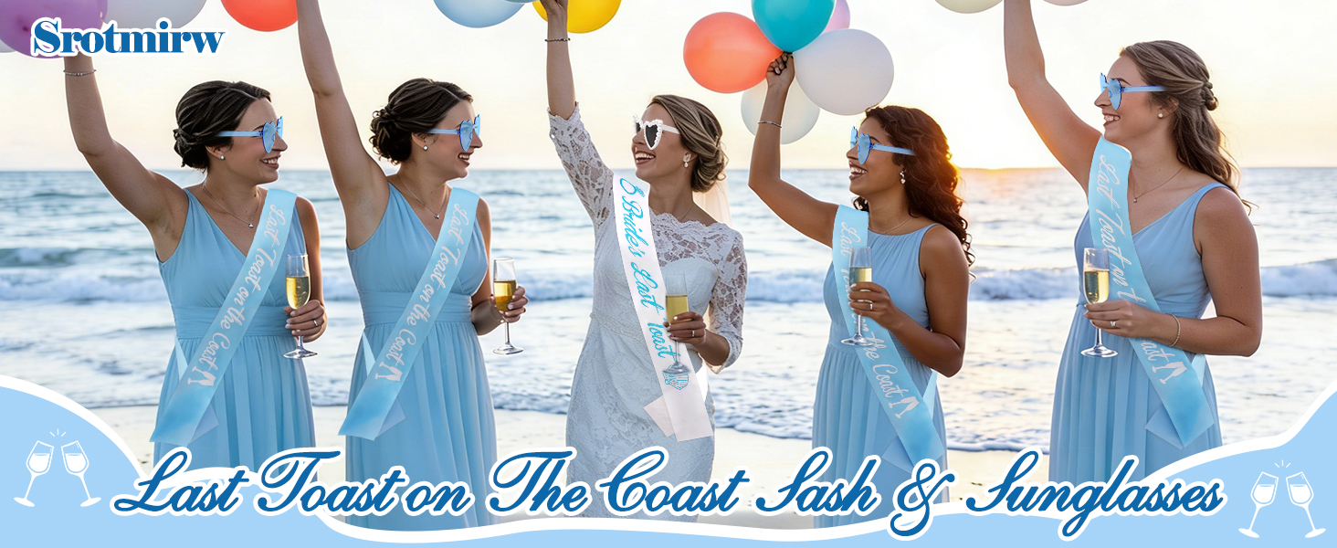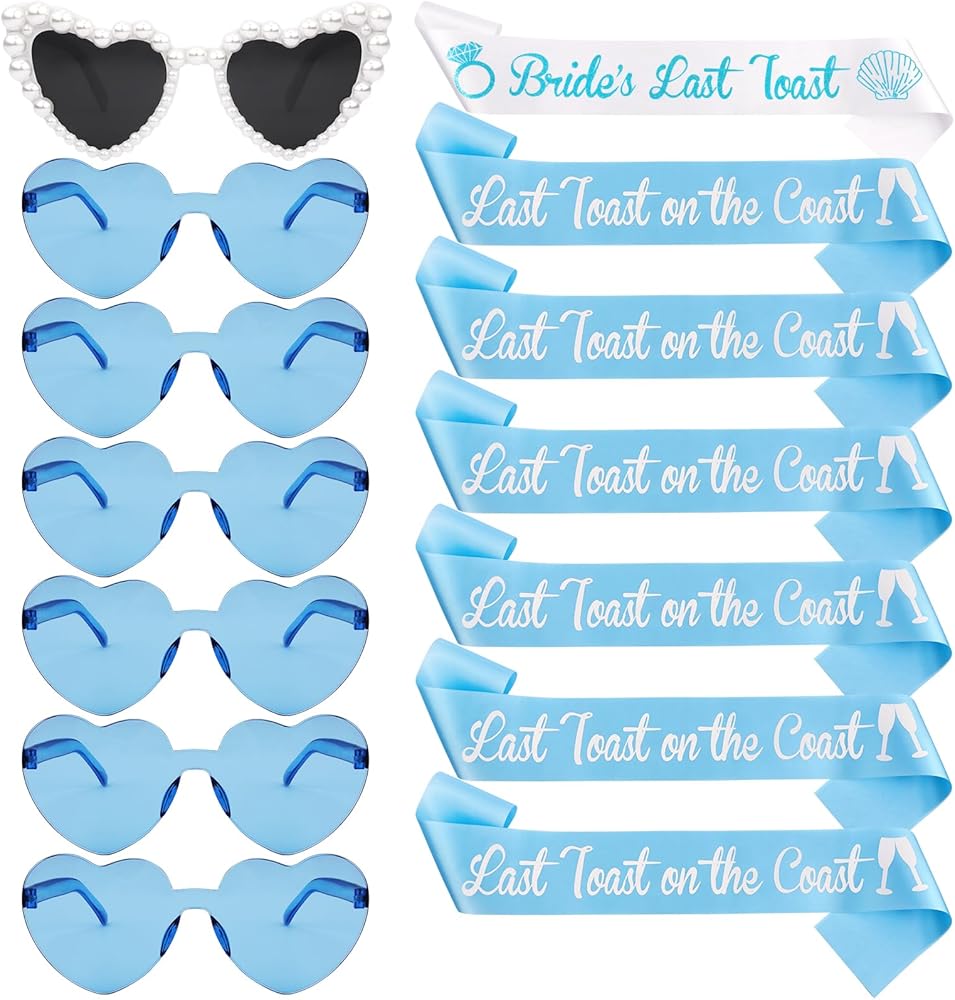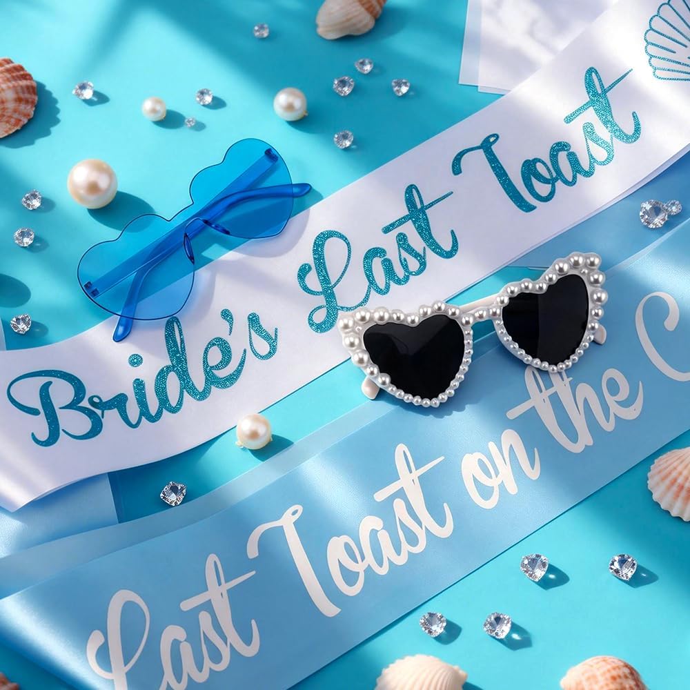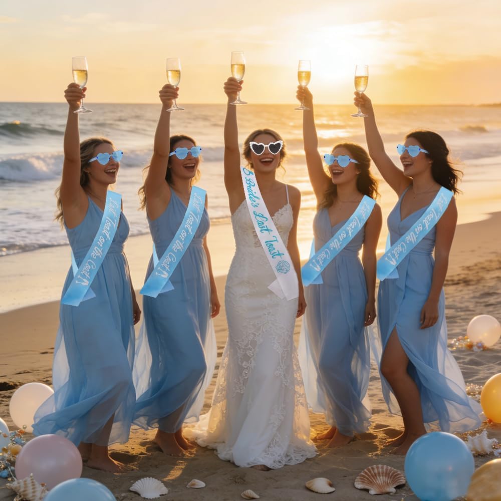 14 قطعة من زخارف حفلات توديع العزوبية الأخيرة على الساحل باللون الأزرق والأبيض على الشاطئ الساحلي لوصيفات العروس ونظارات شمسية مجموعة زينة لحفلات الزفاف وهدايا العروس لوصيفات العروس
