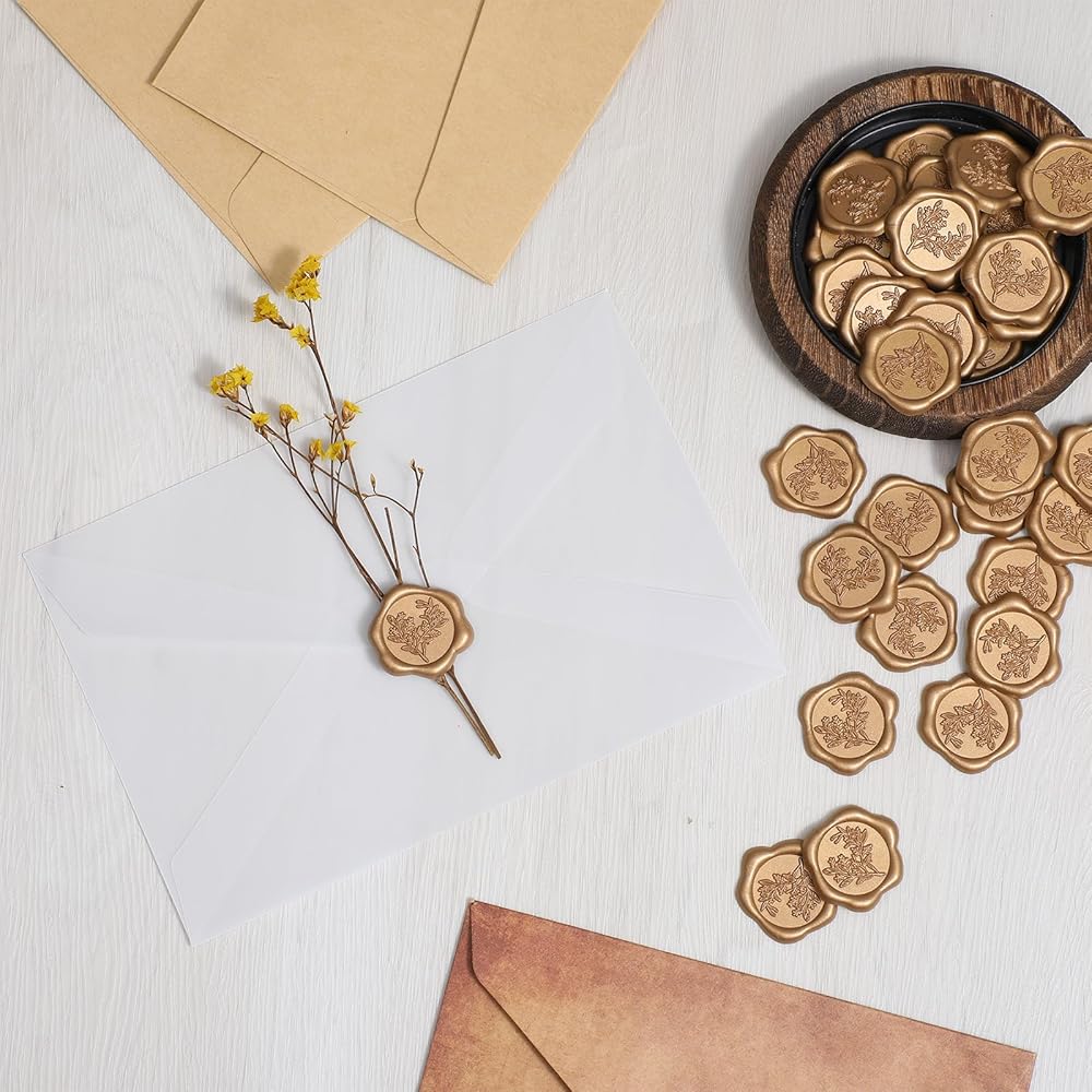 Elegant Antique Floral Design: These gold wax seal stickers feature a timeless classic floral bouquet pattern, adding an instant touch of vintage elegance and sophistication to your wedding invitations, envelopes, and gifts