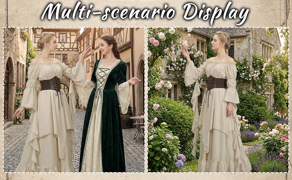 المناسبات: هذا الفستان طويل الأكمام من عصر النهضة مناسب للهالوين، وإعادة تمثيل عصر النهضة، وحفلات الزفاف في العصور الوسطى، ومعرض عصر النهضة، وحفلات موضوع القراصنة، وحفلات ذات طابع فيكتوري، وحفلات تنكرية، والارتداء اليومي. ادخل إلى السحر التاريخي مع فستاننا الفيكتوري العتيق للنساء، في إشارة إلى عصر النهضة