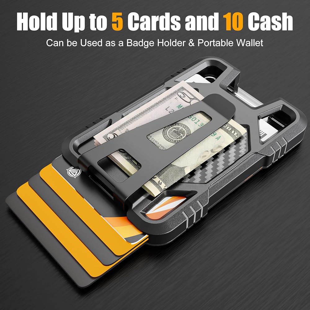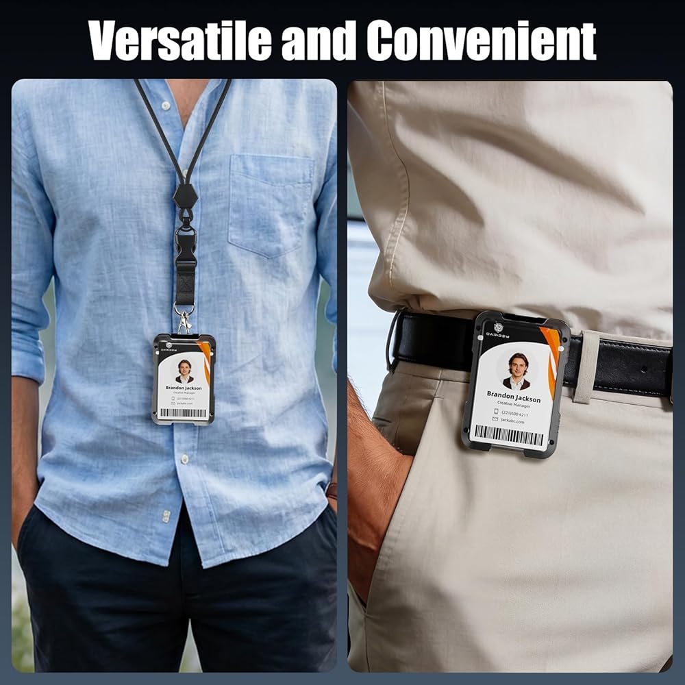 سعة 5 بطاقات: تقوم حاملات الهوية العملية هذه للشارات بتخزين ما يصل إلى 5 بطاقات بشكل آمن، بينما يحمل المشبك الفولاذي المنغنيز القوي ما يصل إلى 10 فواتير. يحافظ التصميم النحيف على تنظيم البطاقات والنقود بشكل أنيق في حامل شارة الهوية المدمج، وهو مثالي للعمل والسفر والاستخدام اليومي.
