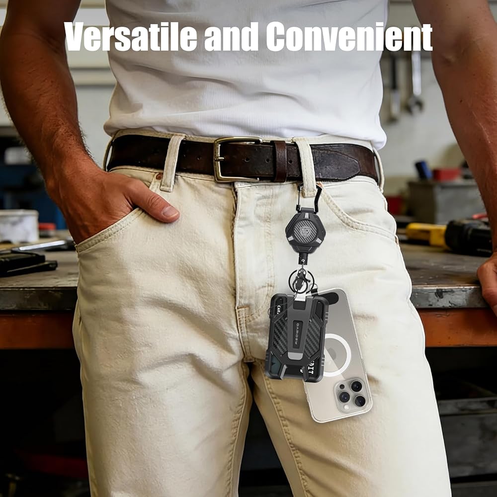 مجموعة كاملة 2 في 1: يتميز حامل الشارات القابل للسحب من Oaridey بمجموعة الكل في واحد تتضمن سلسلة مفاتيح مريحة قابلة للسحب وحامل بطاقة هوية منفصل ومتين من ألياف الكربون. يوفر هذا المزيج الاحترافي إدارة آمنة للبطاقات والوصول إلى المفاتيح، وهو مثالي للموظفين الطبيين والشرطة وموظفي المكاتب والمسافرين.