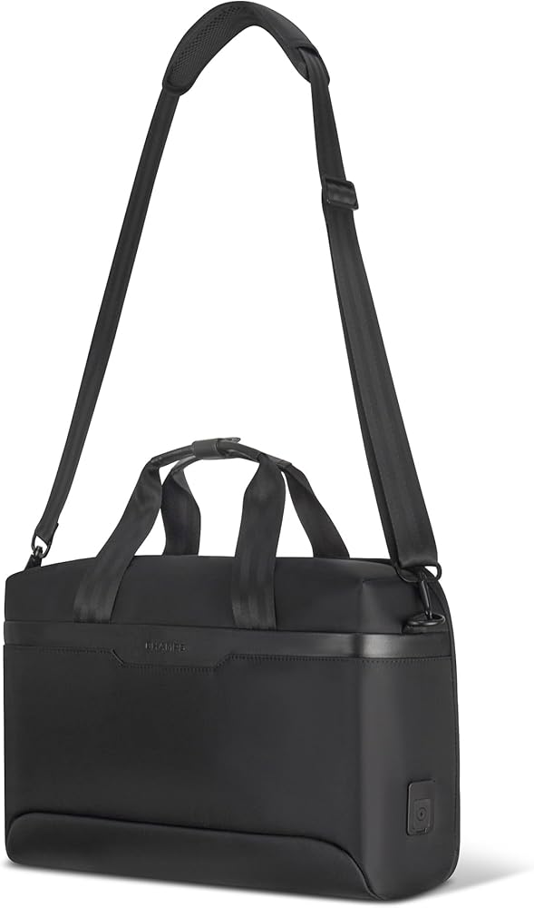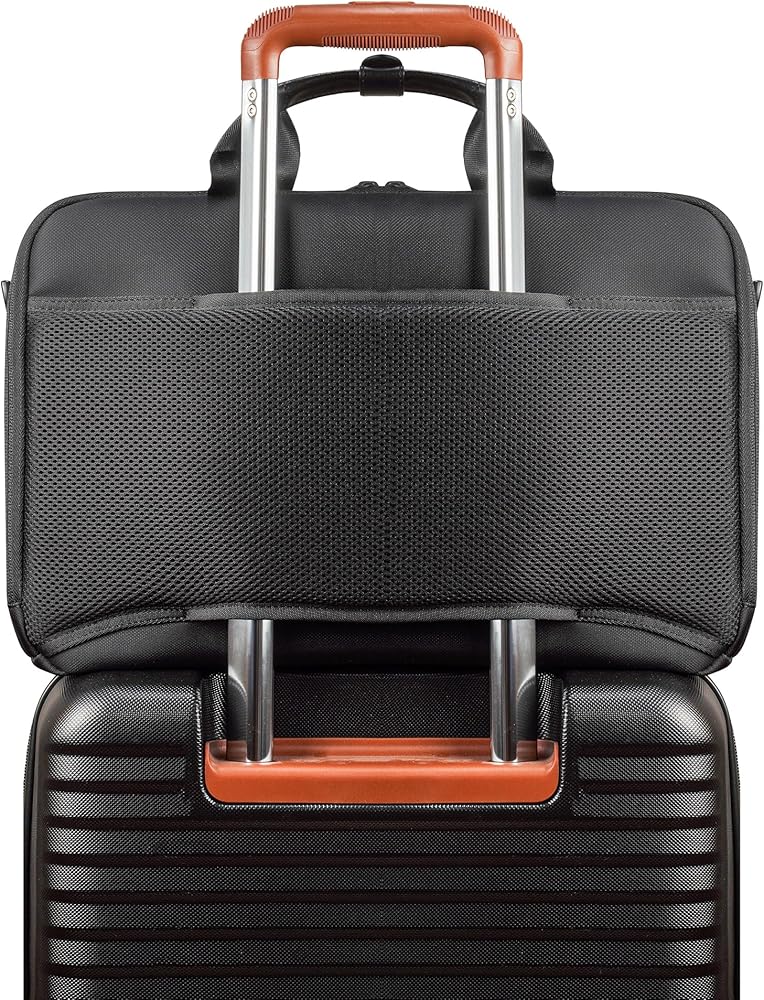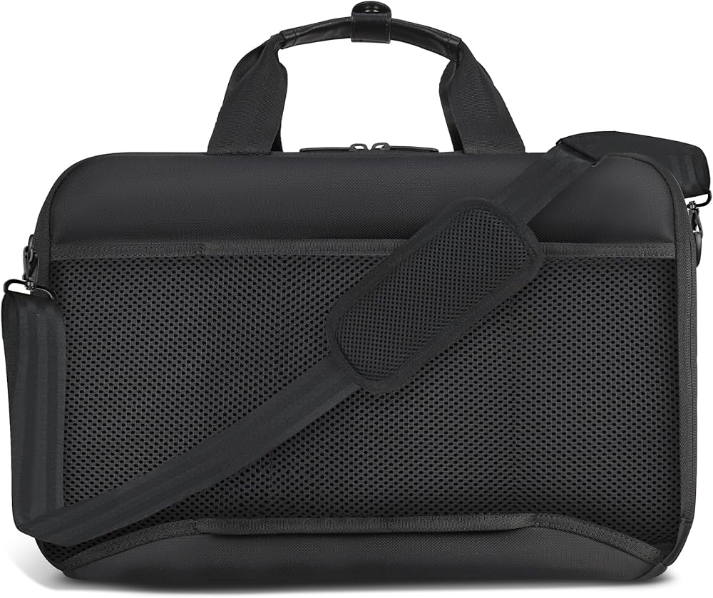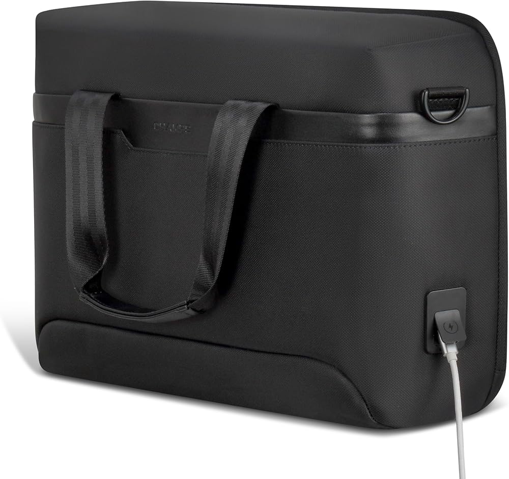 The Laptop Bag from the Onyx Collection is our modern take on the traditional laptop bag. Designed for the on-the-go professional, it's perfect for securely carrying your laptop, documents, and work essentials. Crafted from water-resistant nylon material to ensure durability and style. This sleek and functional bag is designed to meet the demands of modern life, featuring a secure RFID pocket to protect your sensitive information and adjustable air-mesh shoulder straps for unparalleled comfort. The padded 15.6" laptop and tablet sleeve with a compression strap closure provides ultimate protection for your devices, while the built-in USB-C charging port and cable keep you powered up on-the-go, making it easy to stay connected wherever you are. Attach your laptop bag to your suitcase with the trolley strap, and keep your valuables safe with a hidden zippered pocket located behind it. Inside, an inner removable key chain ensures you never lose your keys again. Combining style and functionality, this bag is the ideal choice for those who are looking for a traditional laptop bag with a modern twist.
