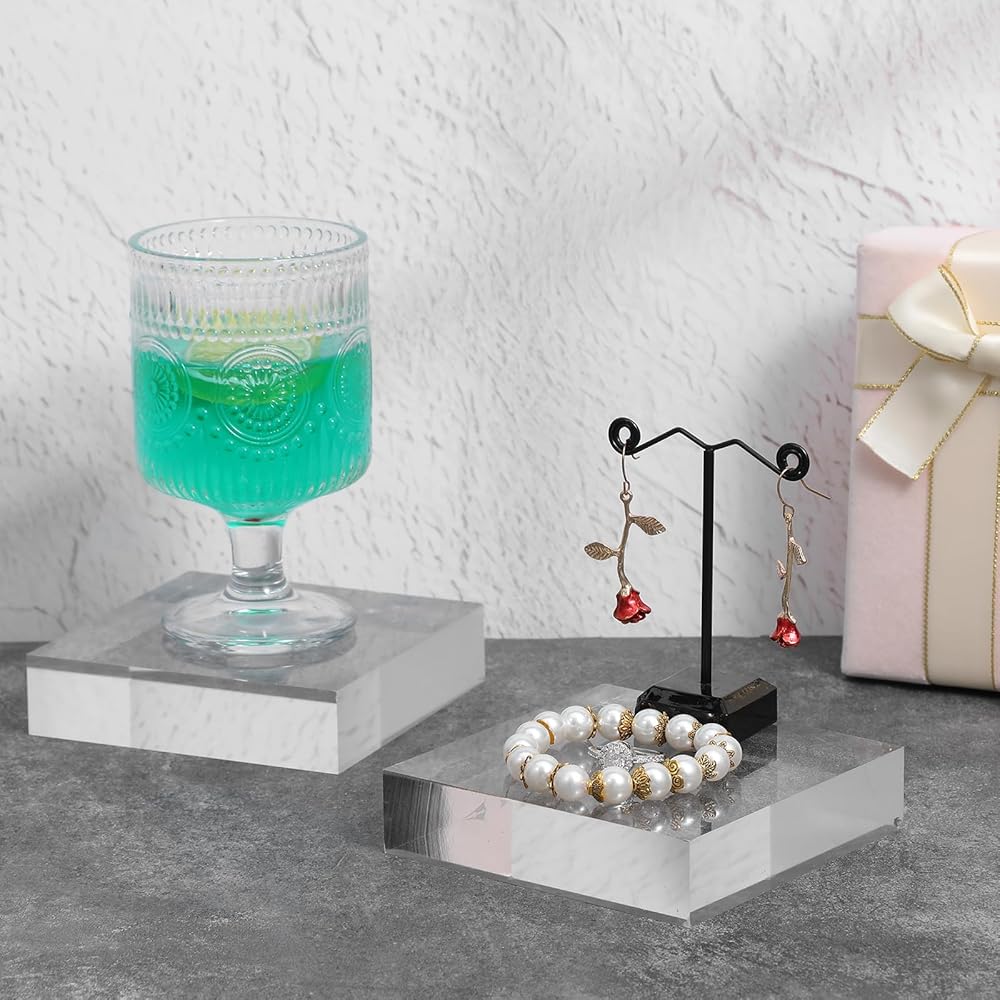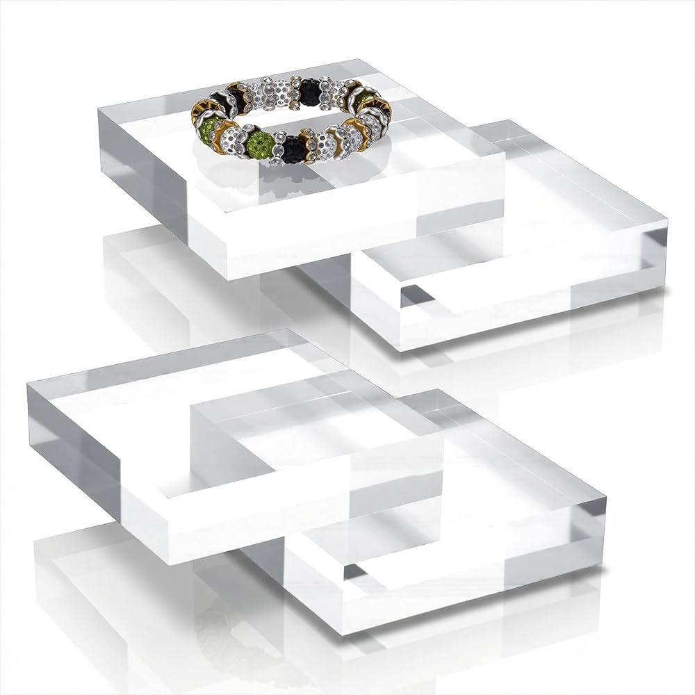 Afcabakila offers a set of 4 premium clear acrylic blocks, perfect as versatile display risers. Each sturdy acrylic cube features a polished finish for an elegant floating effect. Ideal for showcasing collectibles, jewelry, and more in any setting.