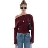 Meet your new go-to sweater for fall — the Lomehue Off-the-Shoulder Sweater, designed to channel the Y2K revival with effortless cool. This burgundy beauty combines a chic off-shoulder neckline that reveals just the right amount of skin with a body-skimming ribbed fabric that hugs your curves in all the right places. The cropped length is ideal for pairing with high-waisted jeans, trousers, or skirts, making it an easy choice for everything from coffee runs to evening outings.