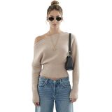 Y2K-Inspired Silhouette: Featuring the comeback off-shoulder cut that's trending everywhere, this sweater delivers nostalgic style with a modern fit.
