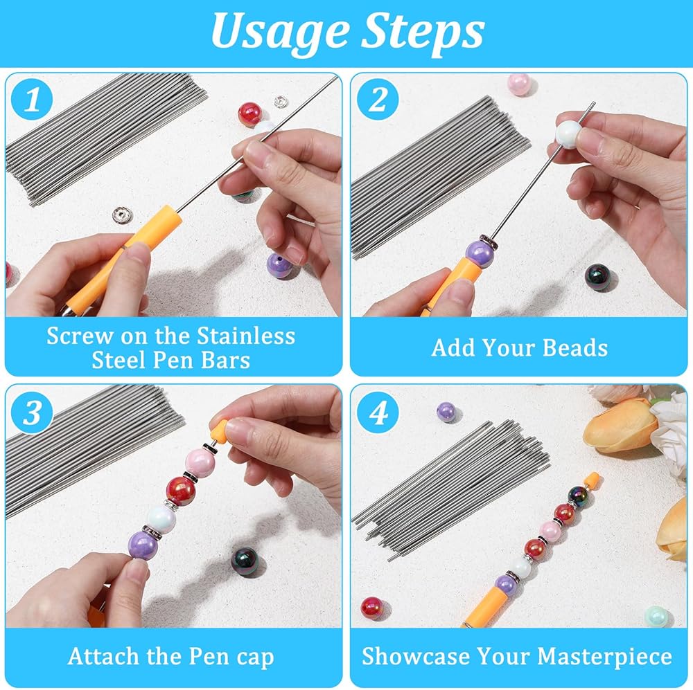 【Durable Stainless Steel Material】Made from high-quality stainless steel, these 4.6-inch rods are built to last and resist bending or corrosion. You can rely on their strength to securely hold beads and pen components through frequent use