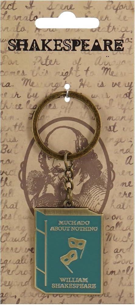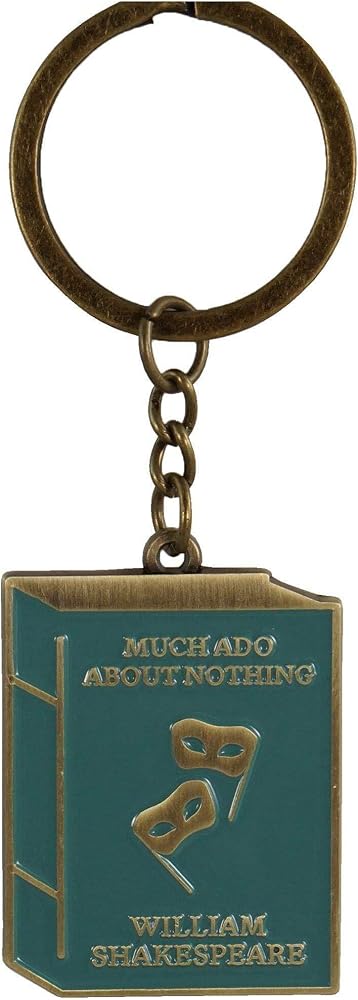 Celebrate wit, romance, and theatrical flair with this Much Ado About Nothing keychain, an elegant tribute to one of Shakespeare's sharpest comedies; Shaped like a miniature book, this keychain features a classic thespian mask design, symbolizing the play's humorous disguises, dramatic misunderstandings, and joyful resolution
