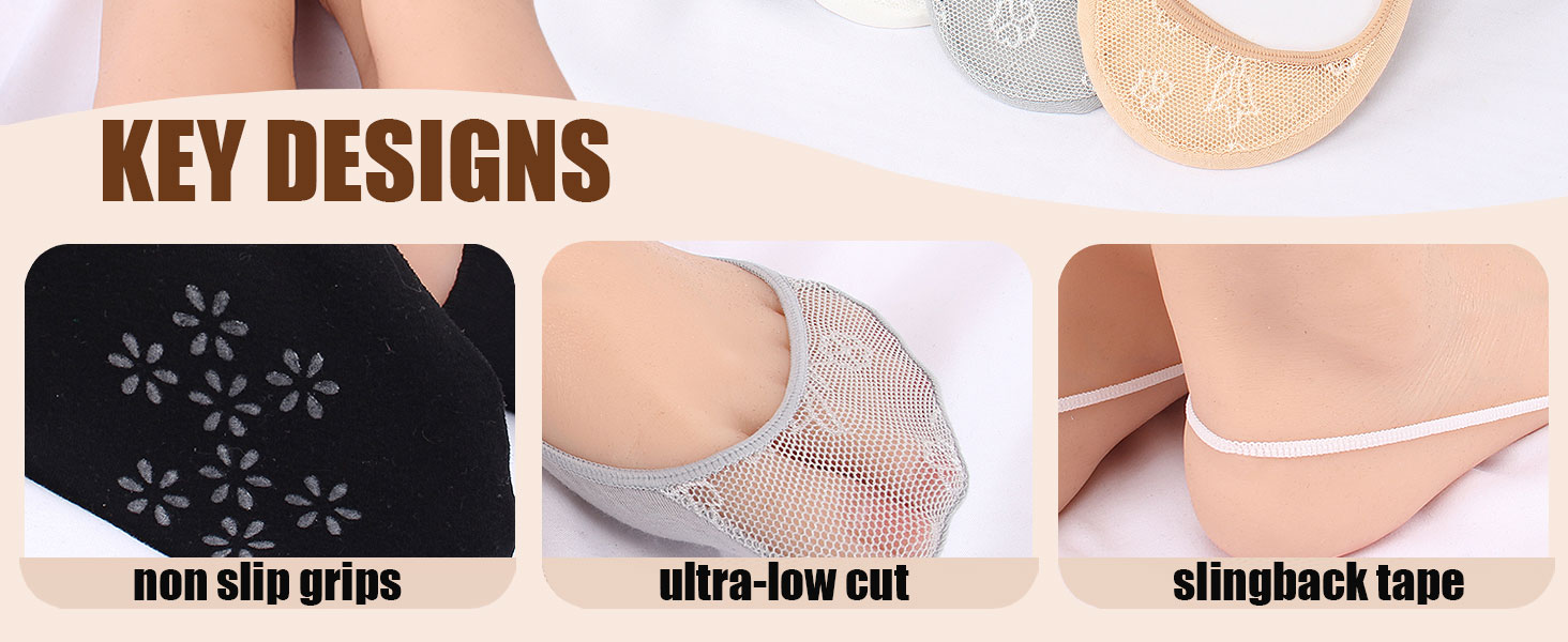 Size & Quantity: These half socks for heels with one size fits most US women shoes size 5-9. 8 Pairs/Pack. Basic colors include black,white,beige and grey