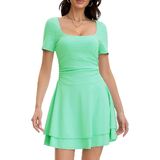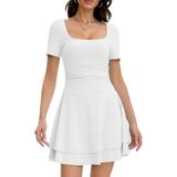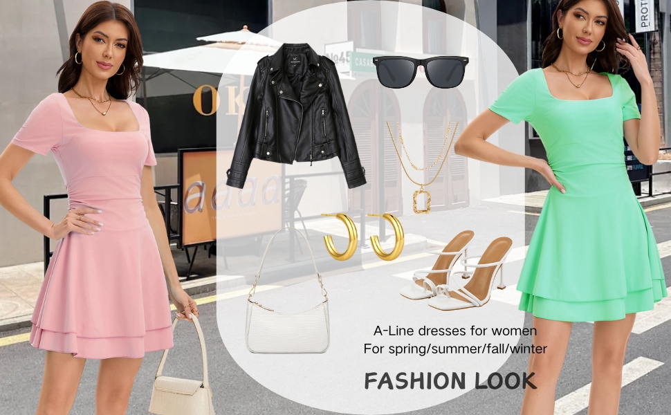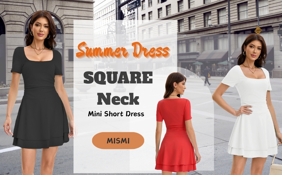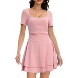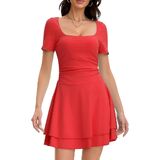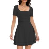 فساتين النادي القصيرة هذه ذات رقبة مربعة، وأكمام قصيرة، وخصر منسدل، وطول صغير فوق الركبة، وحاشية مكشكشة بطبقات، وفستان خصر باسكي للنساء، وفستان صيفي مناسب ومتوهج للنساء.