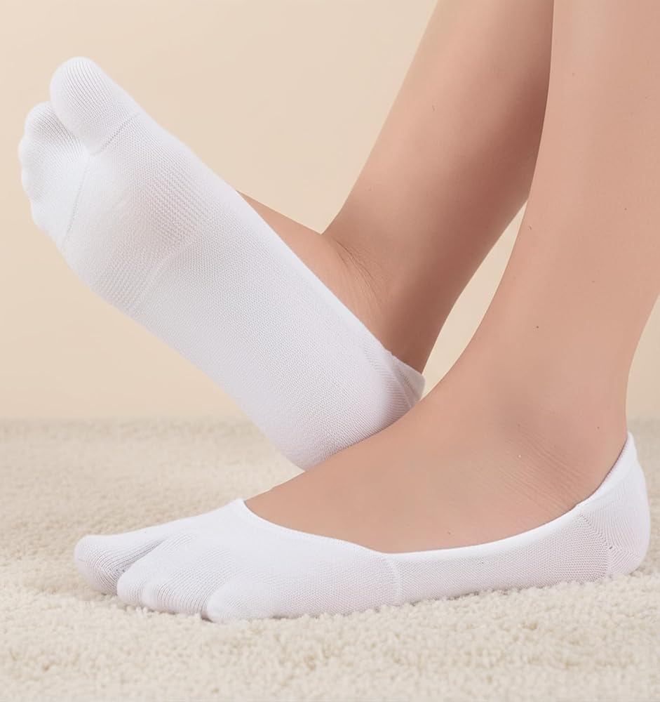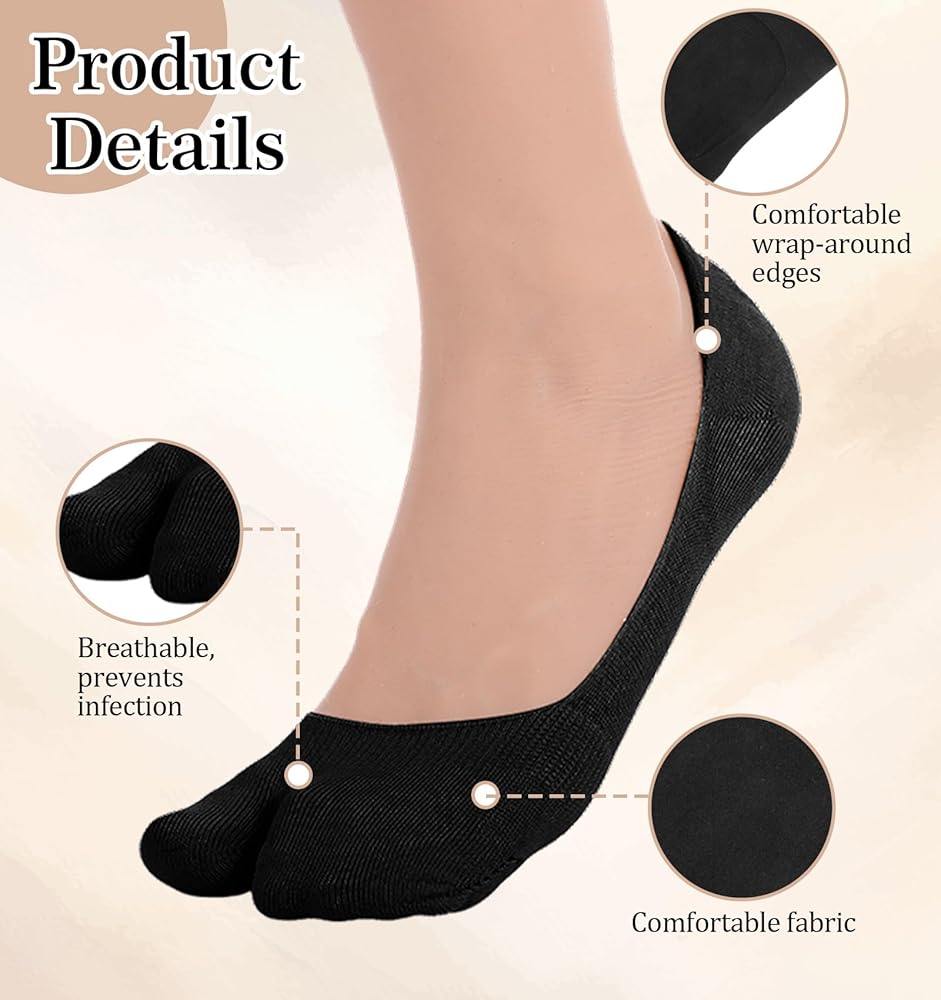 • حماية من الانقسام عند أصابع القدم: تتميز جوارب تابي النسائية بتصميم منفصل عند أصابع القدم يفصل إصبع القدم الكبير عن الآخرين، مما يقلل الاحتكاك بين أصابع القدم والأحذية لتجنب البثور أو مسامير القدم؛