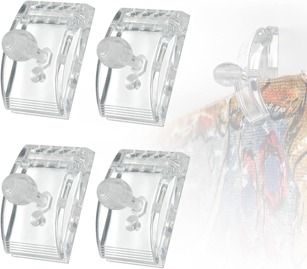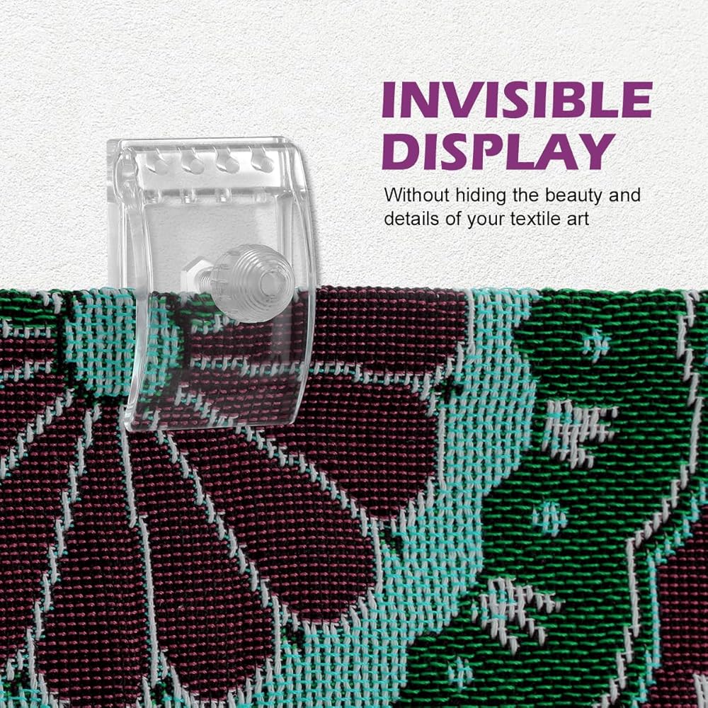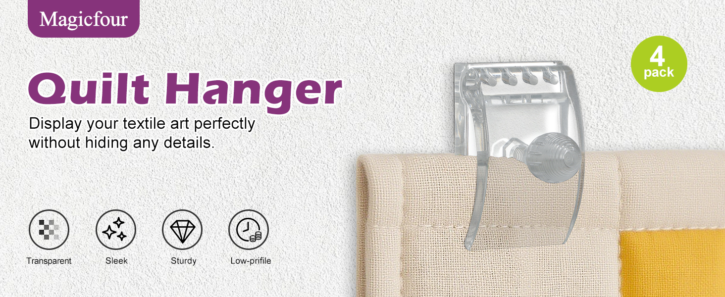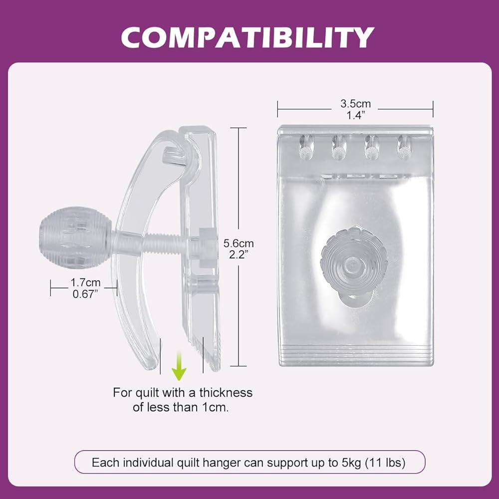 شماعة لحاف Magicfour، 4 قطع من شماعات نسيج شفافة للجدار للعرض، مشابك حامل لحاف شفافة للتعليق للمفروشات والرميات والسجاد والبطانيات واللافتات والأجهزة غير متضمنة