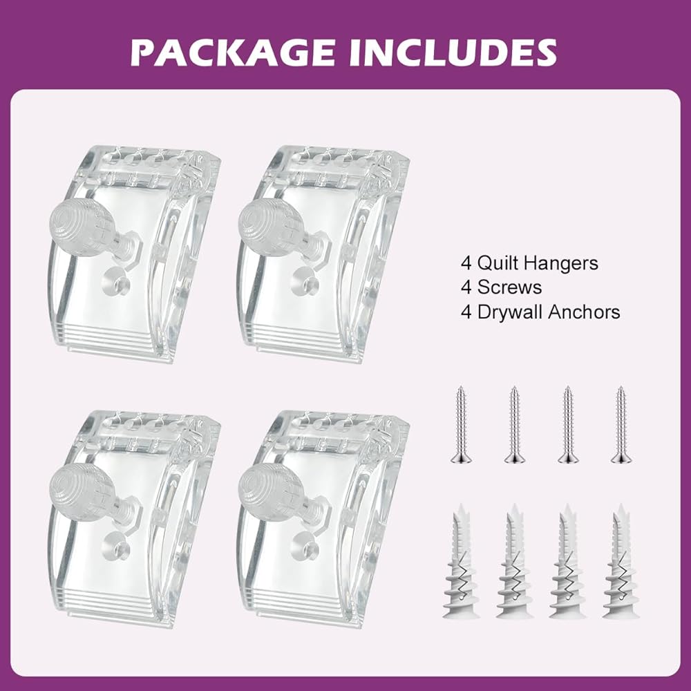 • تشمل العبوة: 4 شماعات لحاف شفافة للعرض، البراغي غير متضمنة