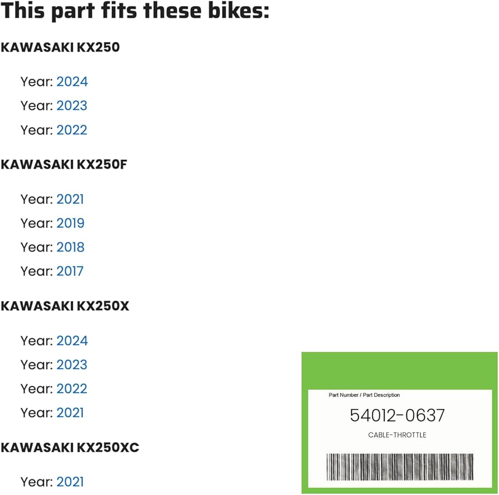 Factory Cable Throttle for Kawasaki KX250 KX250F KX250X | Replaces OEM Part 54012-0637