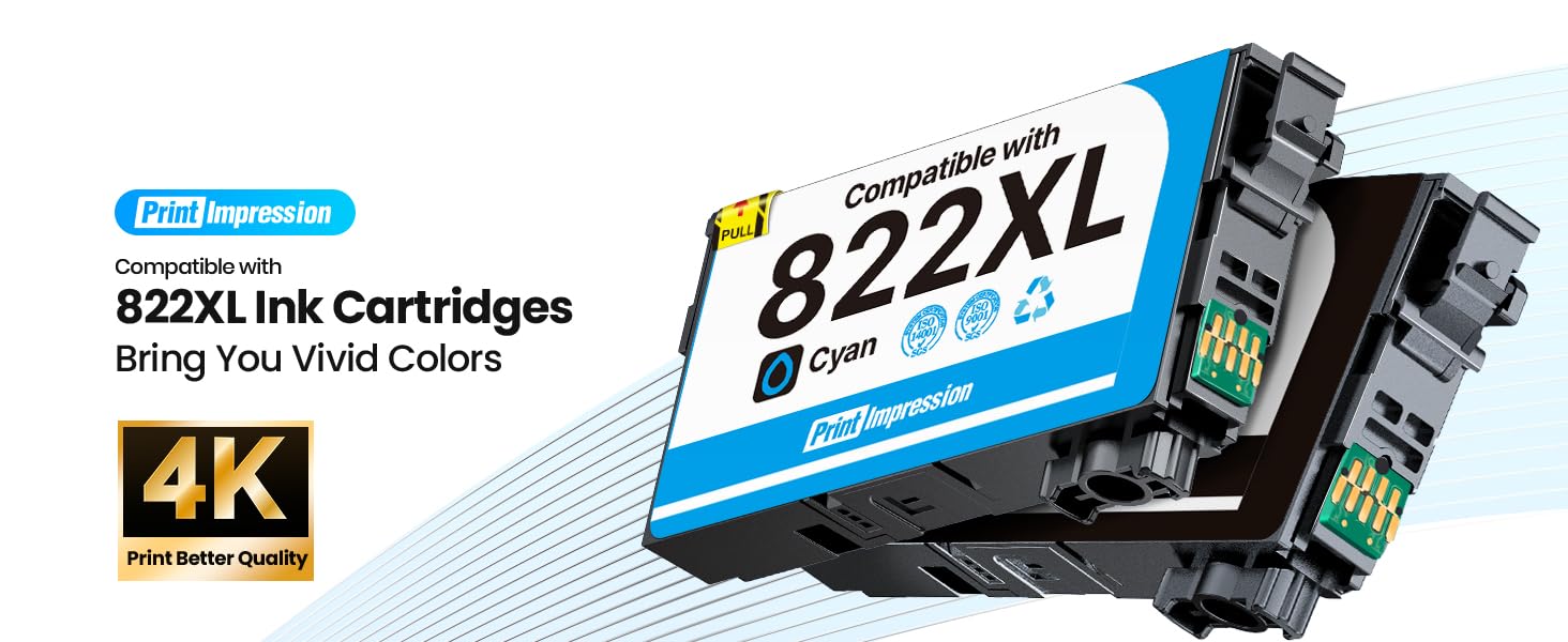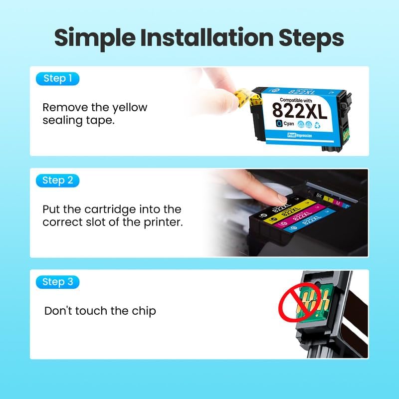• أحدث الرقائق التي تمت ترقيتها: ستساعدك هذه العبوات المكونة من 4 خراطيش حبر epson 822xl على التخلص من إزعاج ترقية البرامج الثابتة وتوفير نص واضح وألوان نابضة بالحياة