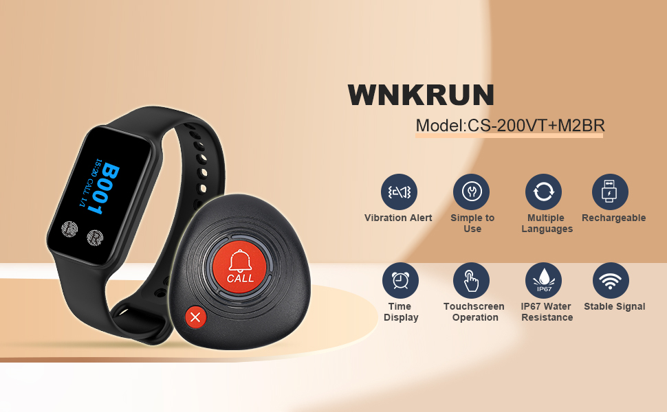 EASY SETUP & USE: The wireless watch paging system is pre-configured at the factory and ready to use right out of the box. The set includes 1 watch receiver and 1 call button. (Note: Please use a 5V charger for charging; avoid using fast-charging adapters.) Our sets are only compatible with products from our brand and will not work with devices from other brands