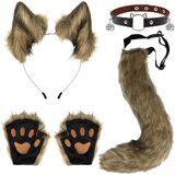 Complete & Adjustable Set: Includes fox ears headband, fox paws gloves, fluffy fox tail, and collar necklace. The fox tail ties easily around the waist, providing a secure and comfortable fit for adults.