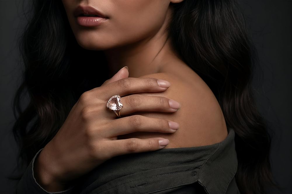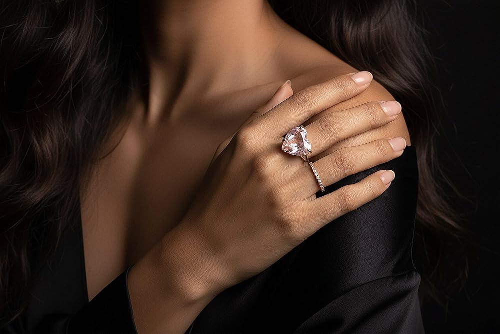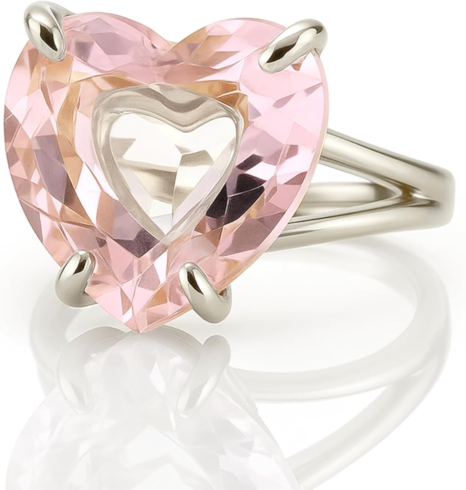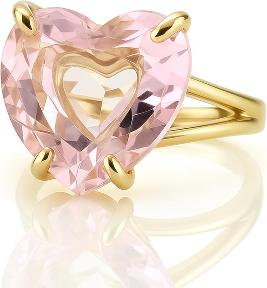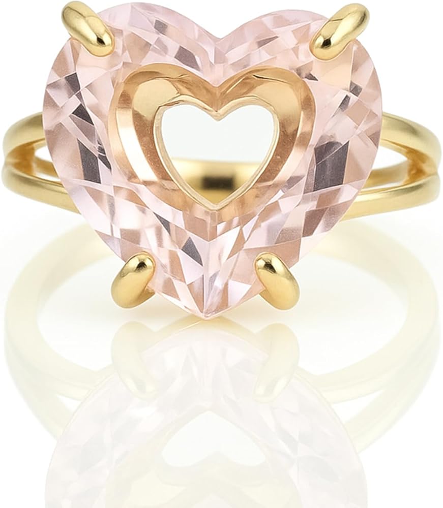 Celebrate self-love and softness with this rose quartz heart cut ring, crafted with a prong setting in 14k gold filled. Known as the stone of love and compassion, rose quartz emits a calming, nurturing energy. The faceted heart shape brings added brilliance and dimension to the pale pink hue, while the gold band adds a refined touch. Whether for yourself or someone special, this statement ring radiates warmth, emotion, and meaning.
