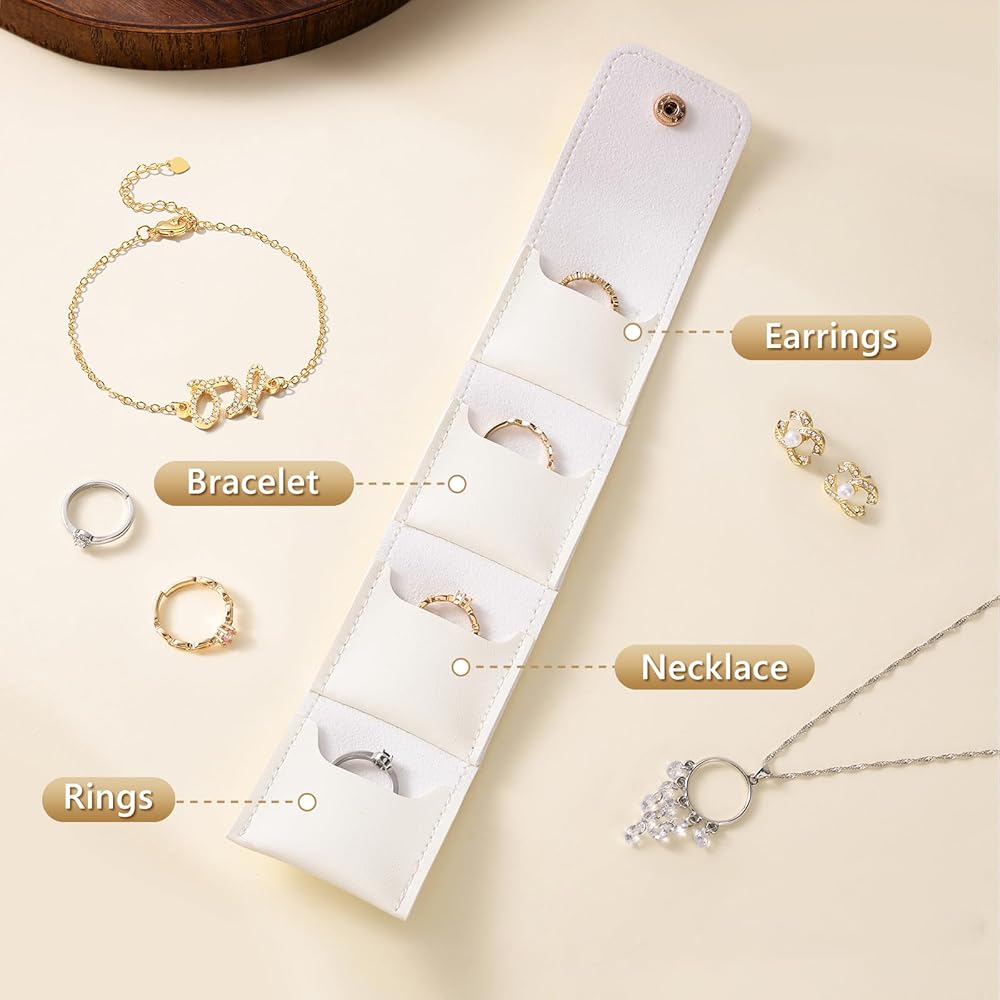 【تنظيم ذكي متعدد المناطق وخالي من التشابك】قل وداعًا للقلائد المتشابكة والأقراط المفقودة! يتميز منظم مجوهرات السفر الخاص بنا بـ 4 مناطق تخزين مخصصة جميعها مصممة للحفاظ على الأساور والقلائد المطرزة والأقراط الحلقية والخواتم الأنيقة والمقتنيات منفصلة بشكل أنيق. تم تصميم كل حجرة لتناسب أنواع المجوهرات المختلفة، مما يضمن عدم وجود تشابك أو خدوش أو فقدان، مما يجعل التنظيم سهلاً سواء كنت تقوم بالتعبئة لرحلة أو تخزين الملابس اليومية.