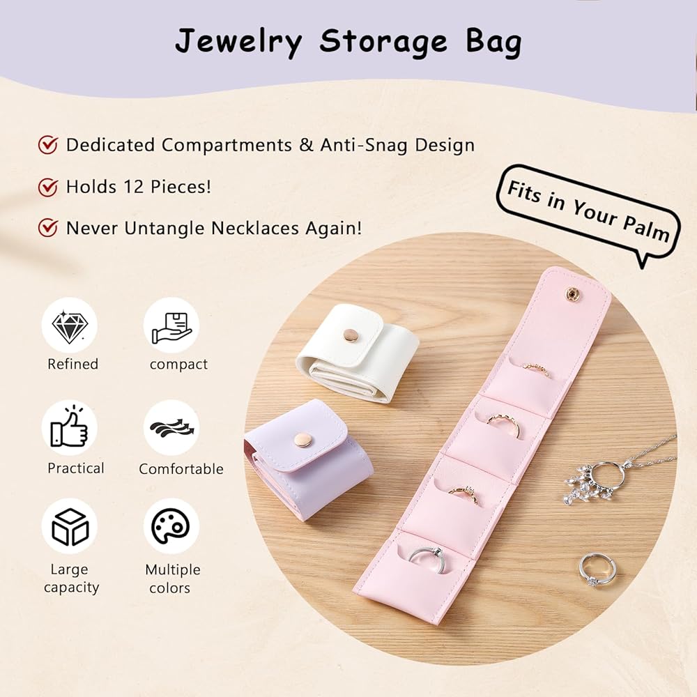 【أساسية للسفر صغيرة الحجم وقابلة للحمل للغاية】تجمع حقيبة المجوهرات الصغيرة هذه بين وظائف منظم مجوهرات السفر وحقيبة سفر المجوهرات، المصممة لتكون رفيقك المثالي أثناء التنقل. تزن فقط 1 أونصة وبحجم صغير (2.4 بوصة طول × 1.9 بوصة عرض × 0.98 بوصة ارتفاع)، فهي تناسب بسهولة حقيبة يدك أو أمتعتك أو حقيبتك المحمولة أو حتى جيب المعطف - مثالية لقضاء عطلة نهاية الأسبوع أو رحلات العمل أو العطلات أو التنقلات اليومية. على عكس حقائب المجوهرات الضخمة، تتيح لك حقيبة مجوهرات السفر خفيفة الوزن هذه إحضار إكسسواراتك المفضلة دون شغل مساحة إضافية، مما يجعلها ضرورية للمسافرين الدائمين.