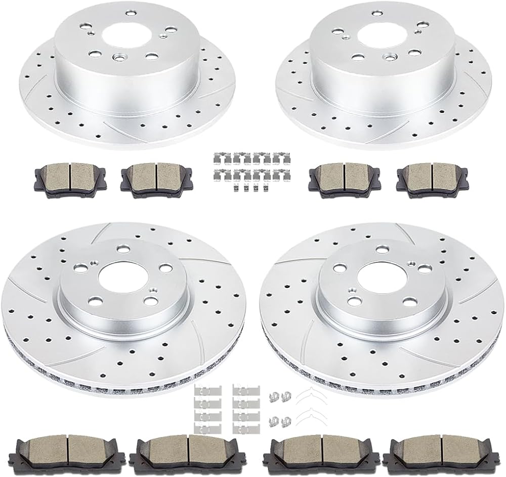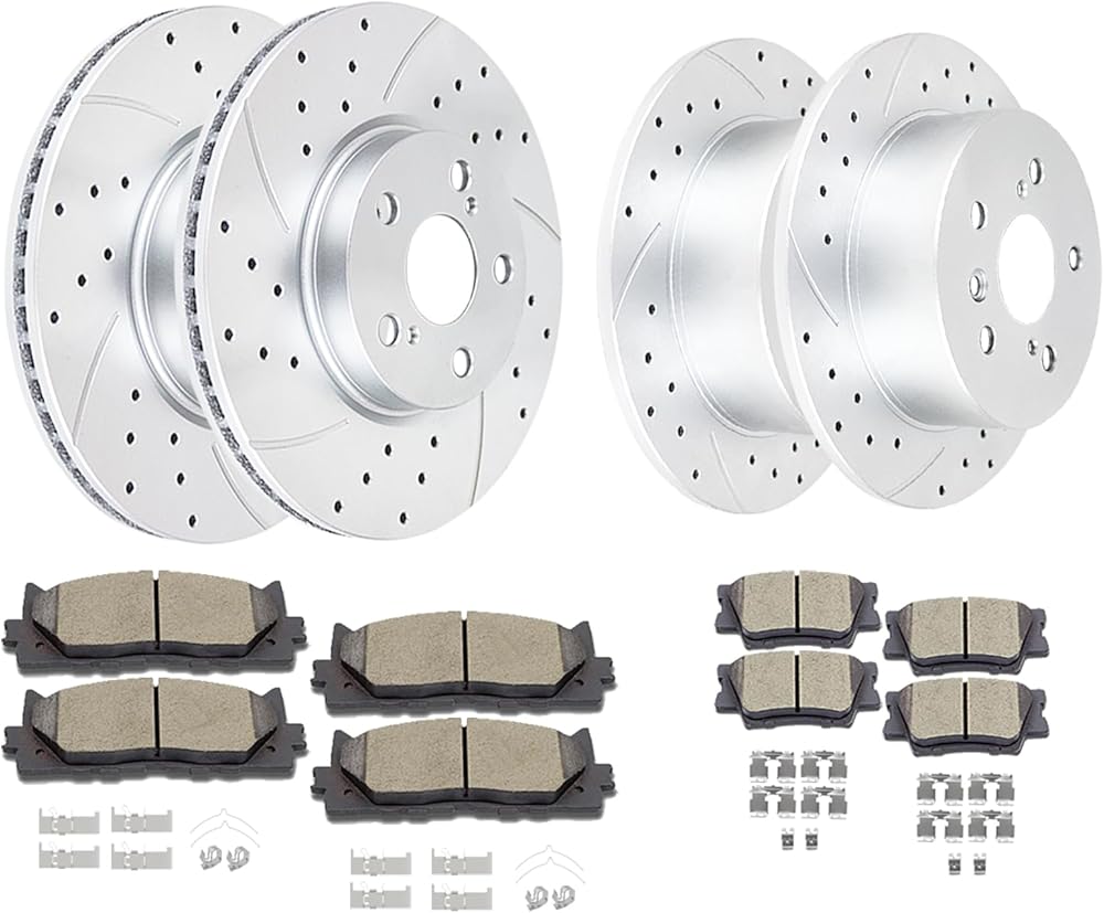 Front and Rear Drilled and Slotted Brake Rotors Ceramic Brake Pads Brake Kit Replacement for Toyota Avalon 2008 – 2012 Camry 2007 – 2011 Lexus ES350 2007 – 2012